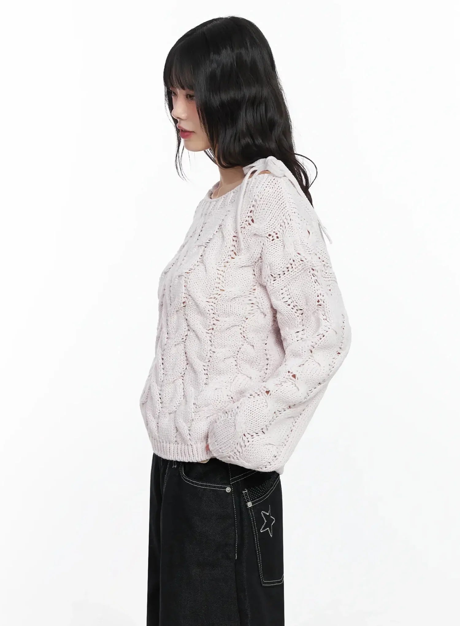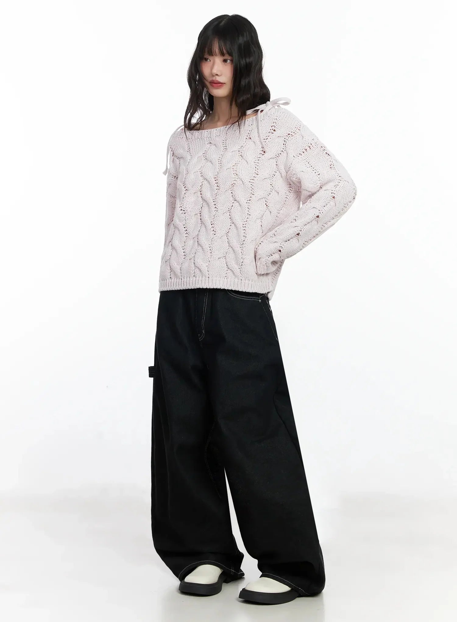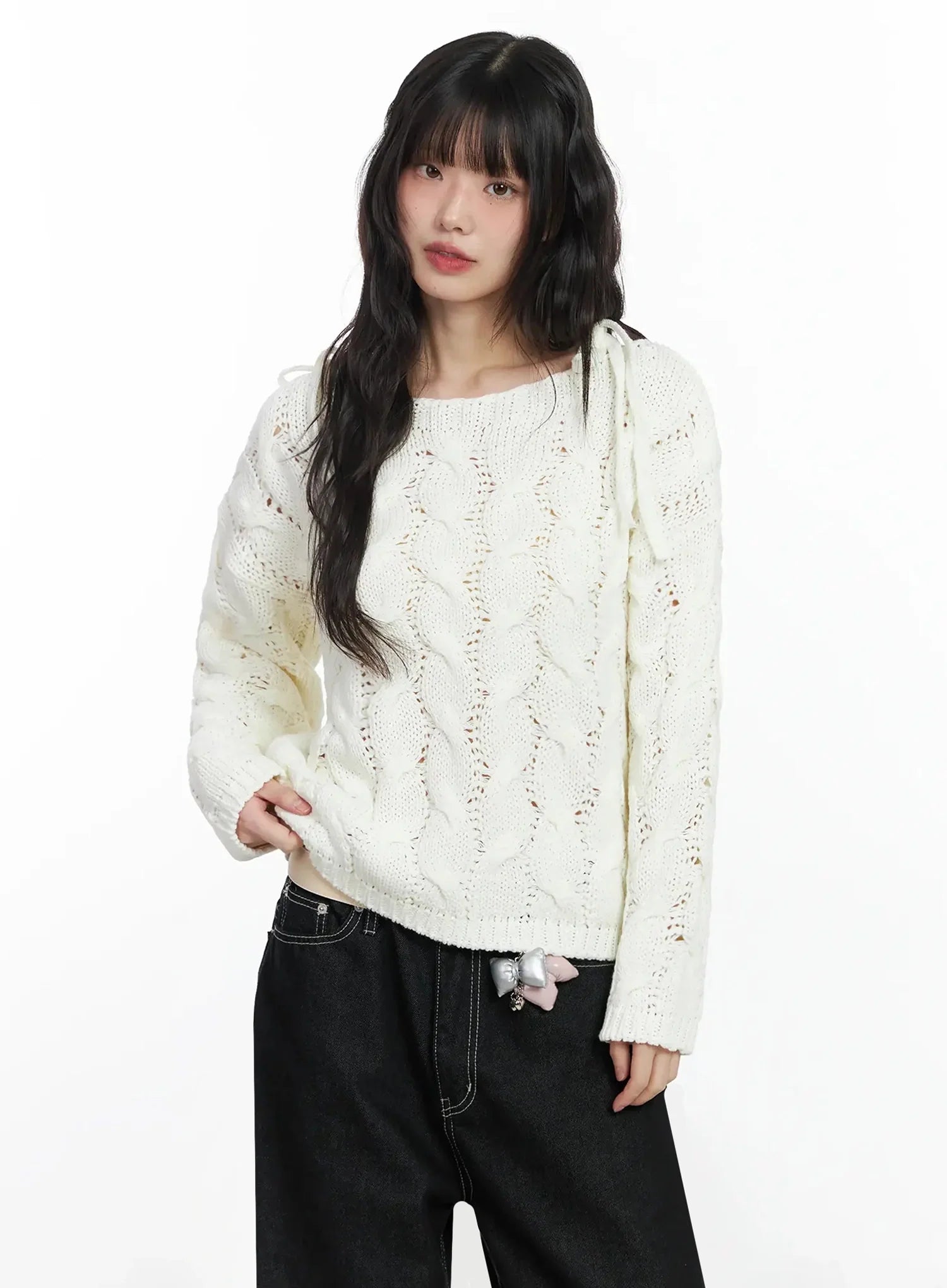 Boat Neck Cable Knit Top IF505