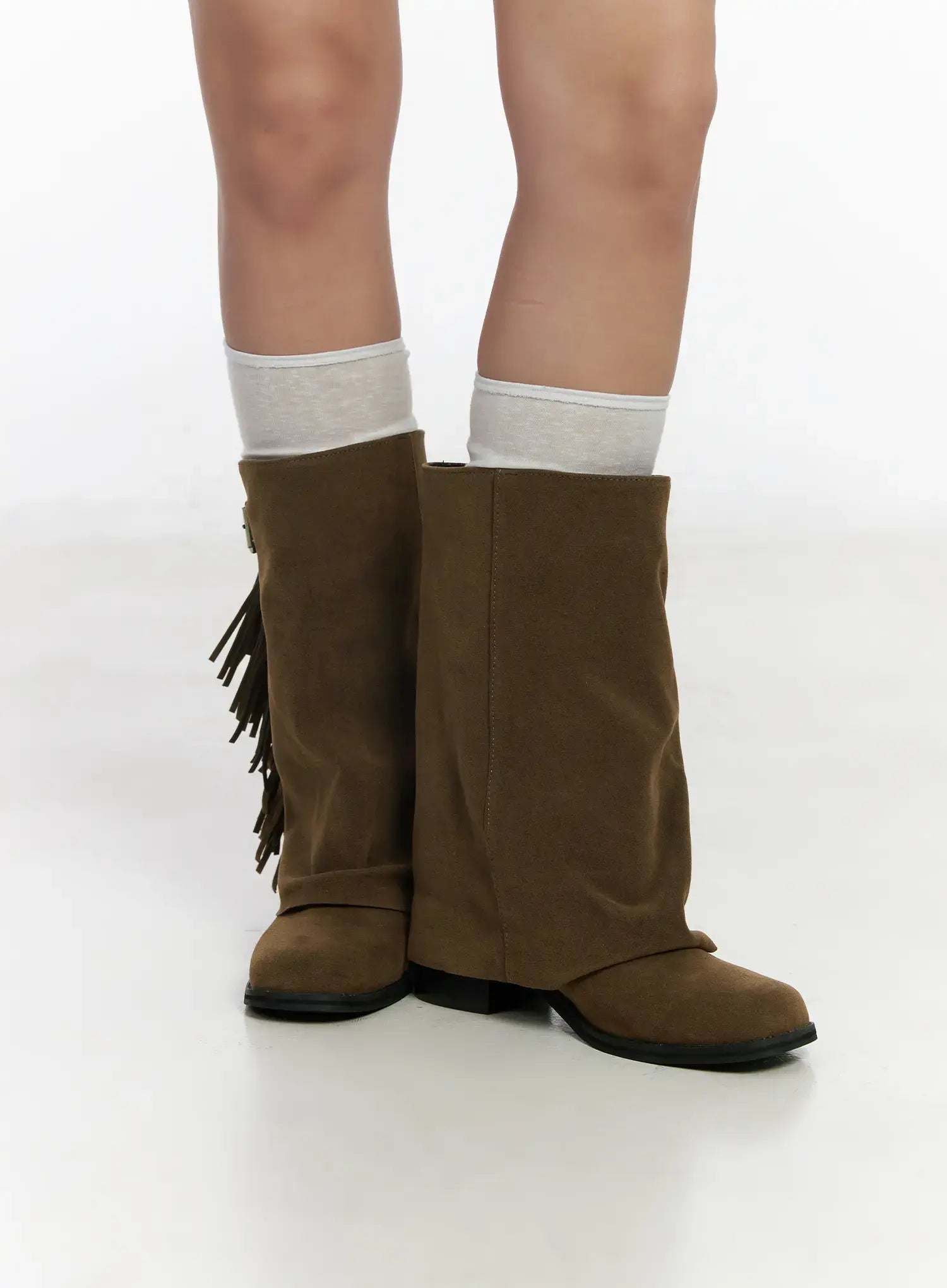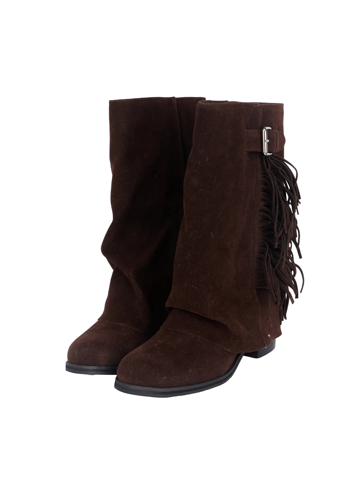 Brown Suede Fringe Boots CF503