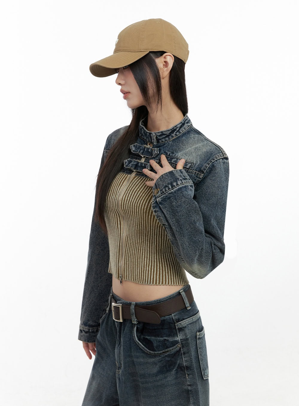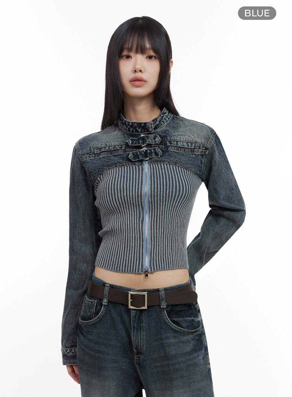 Buckle-Up Crop Denim Jacket IO430