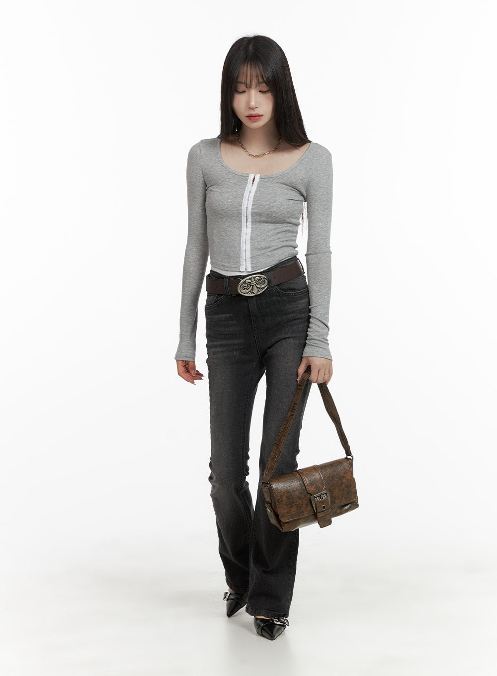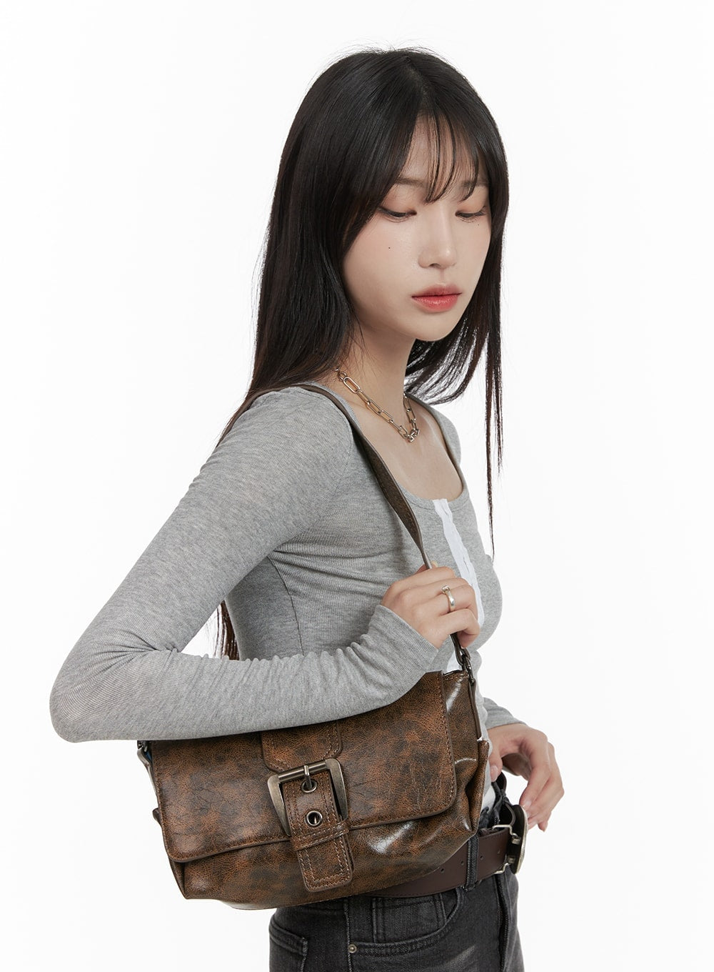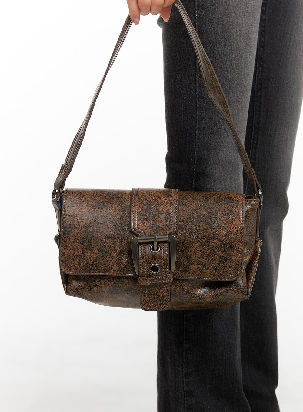Buckle Washed Faux Leather Shoulder Bag CA403