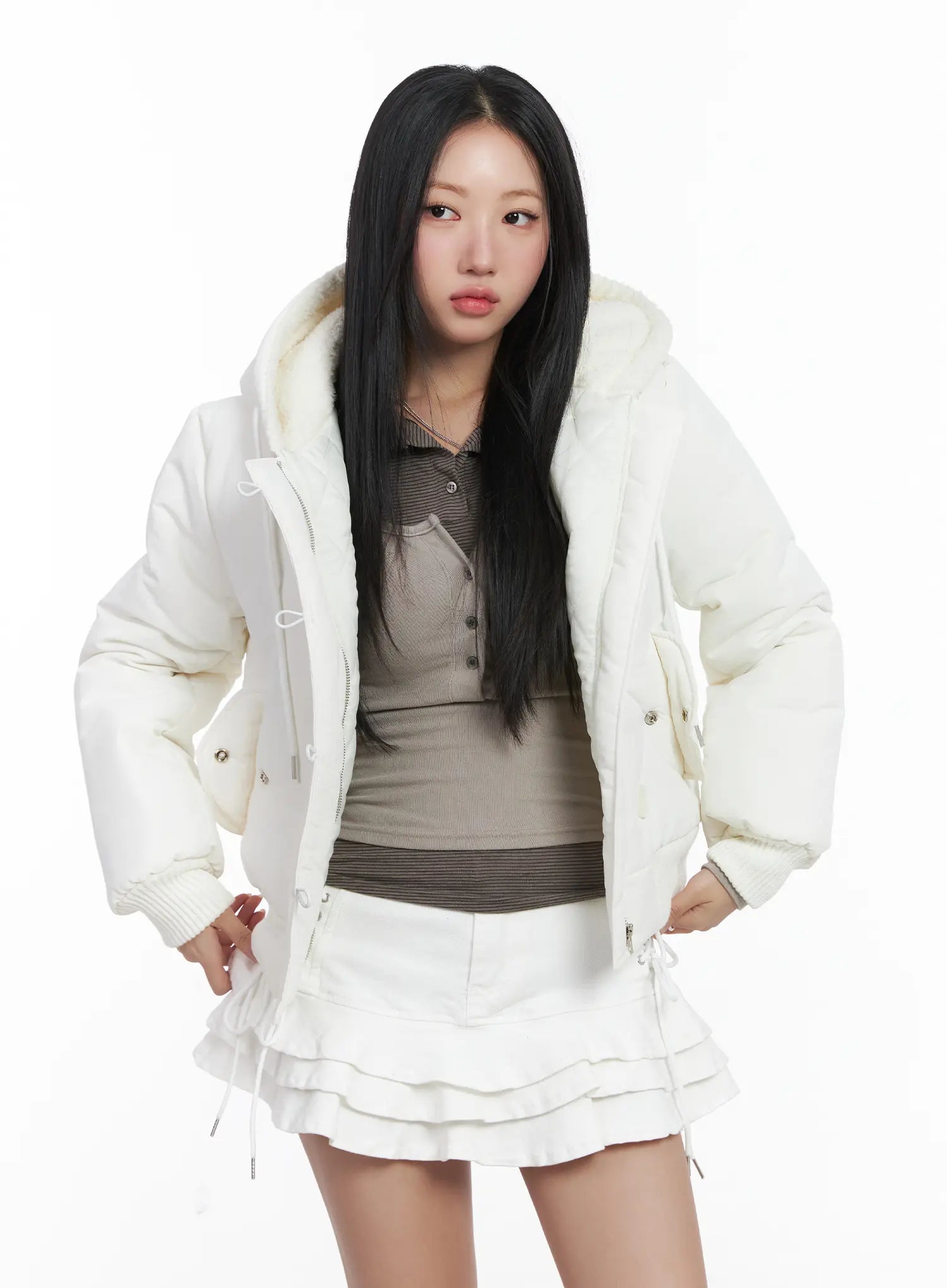 Button Faux Fur Crop Puffer Jacket CD529