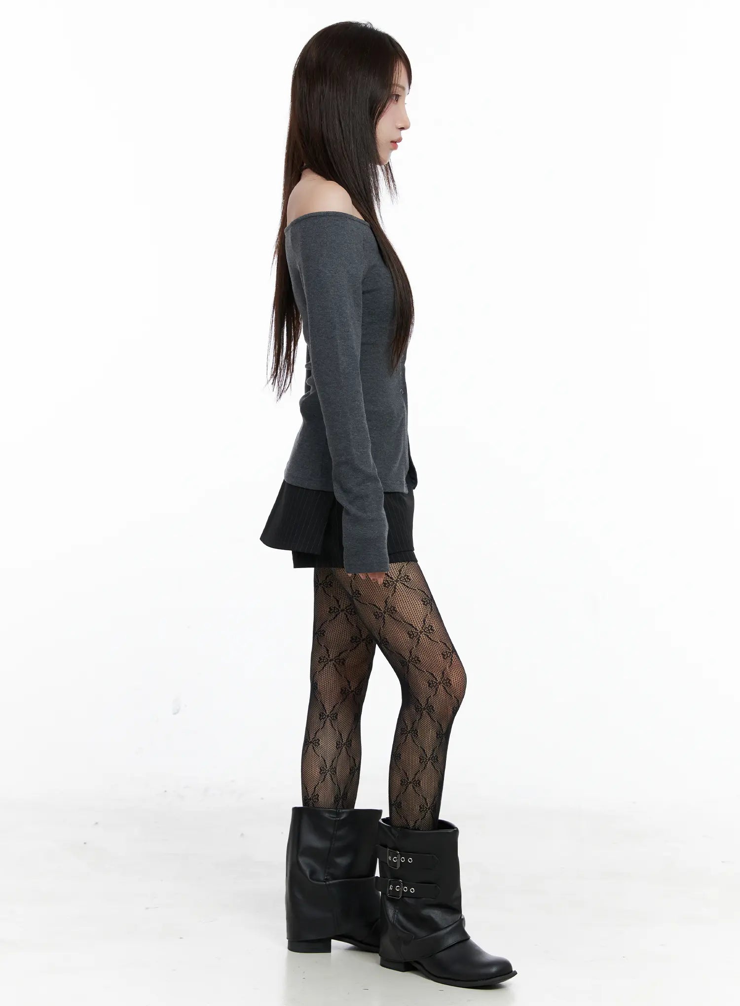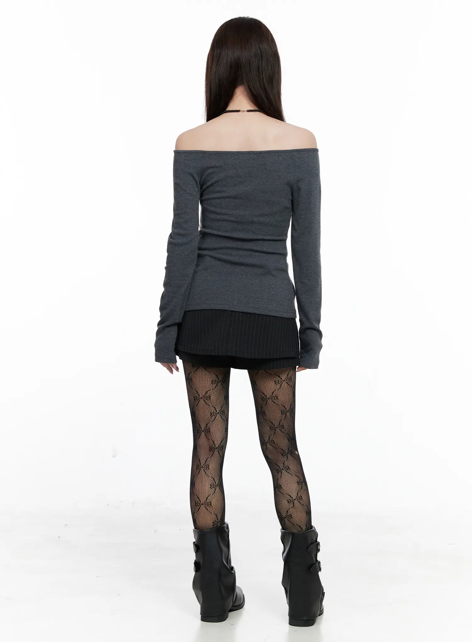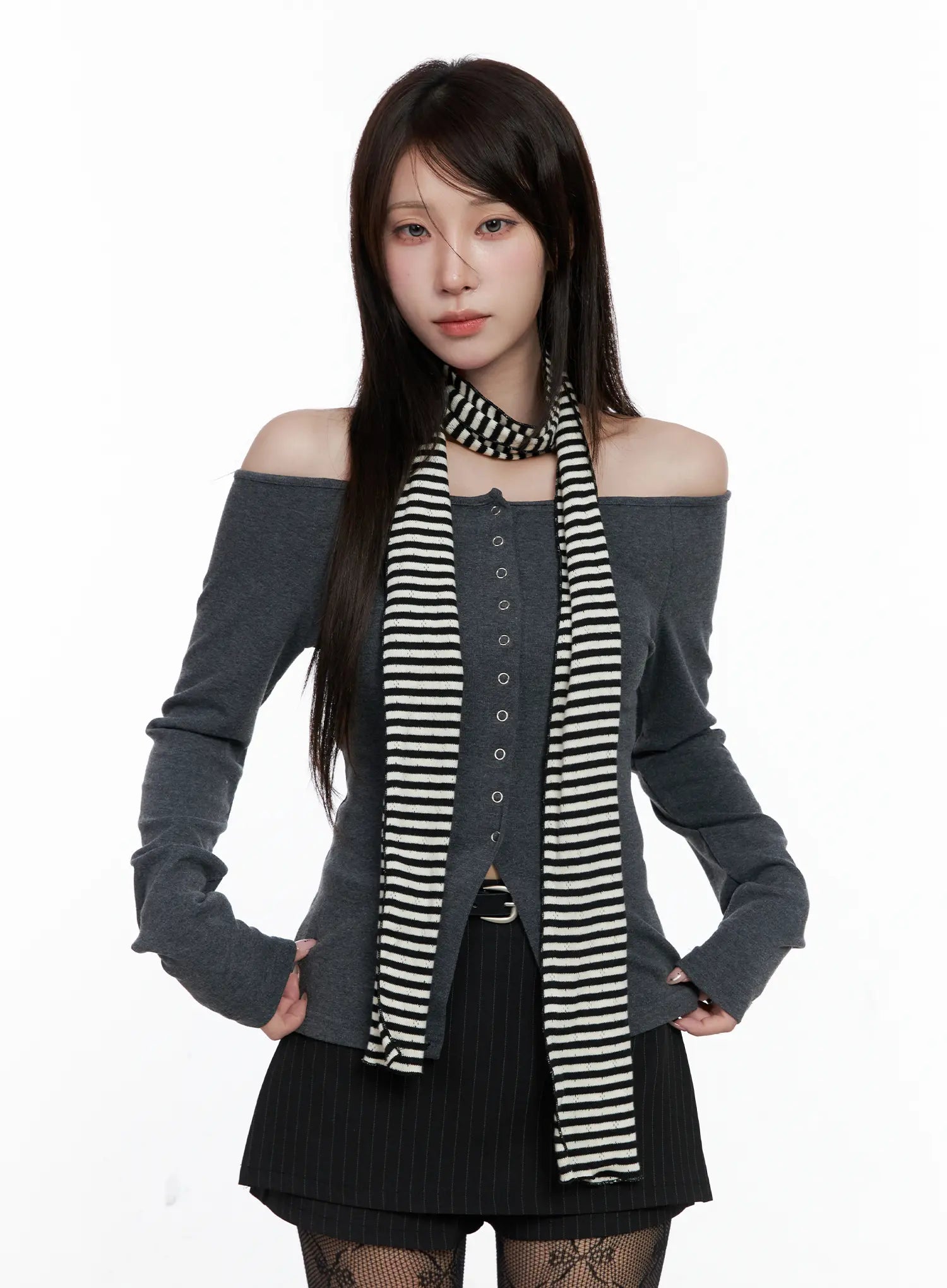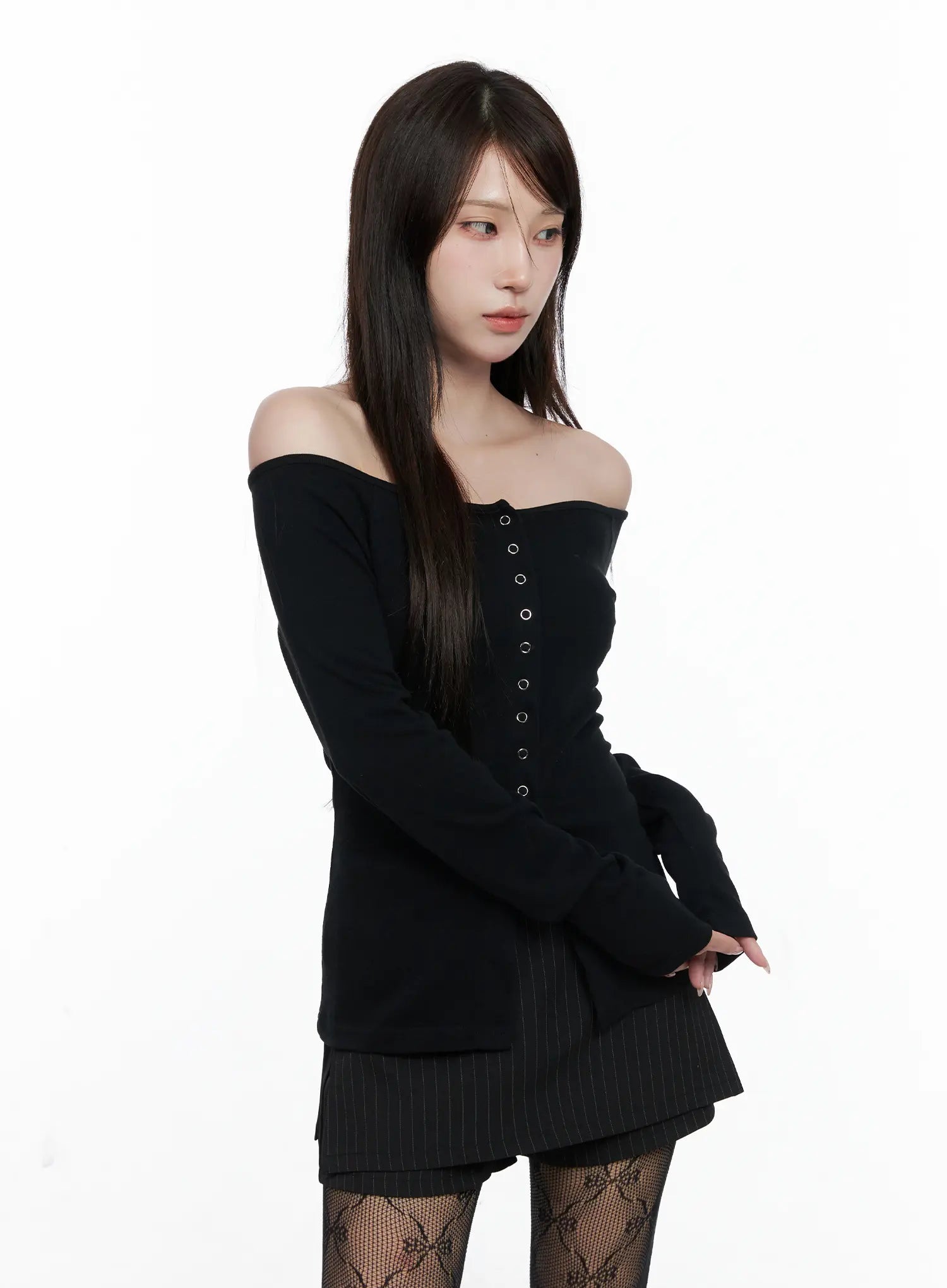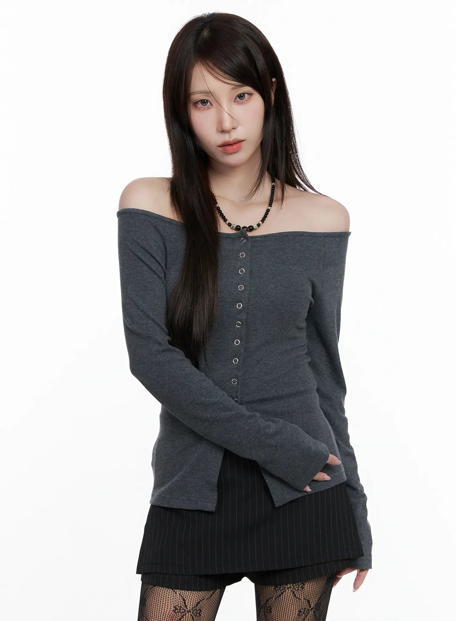 Buttoned Off-Shoulder Long Sleeve Cardigan CO520