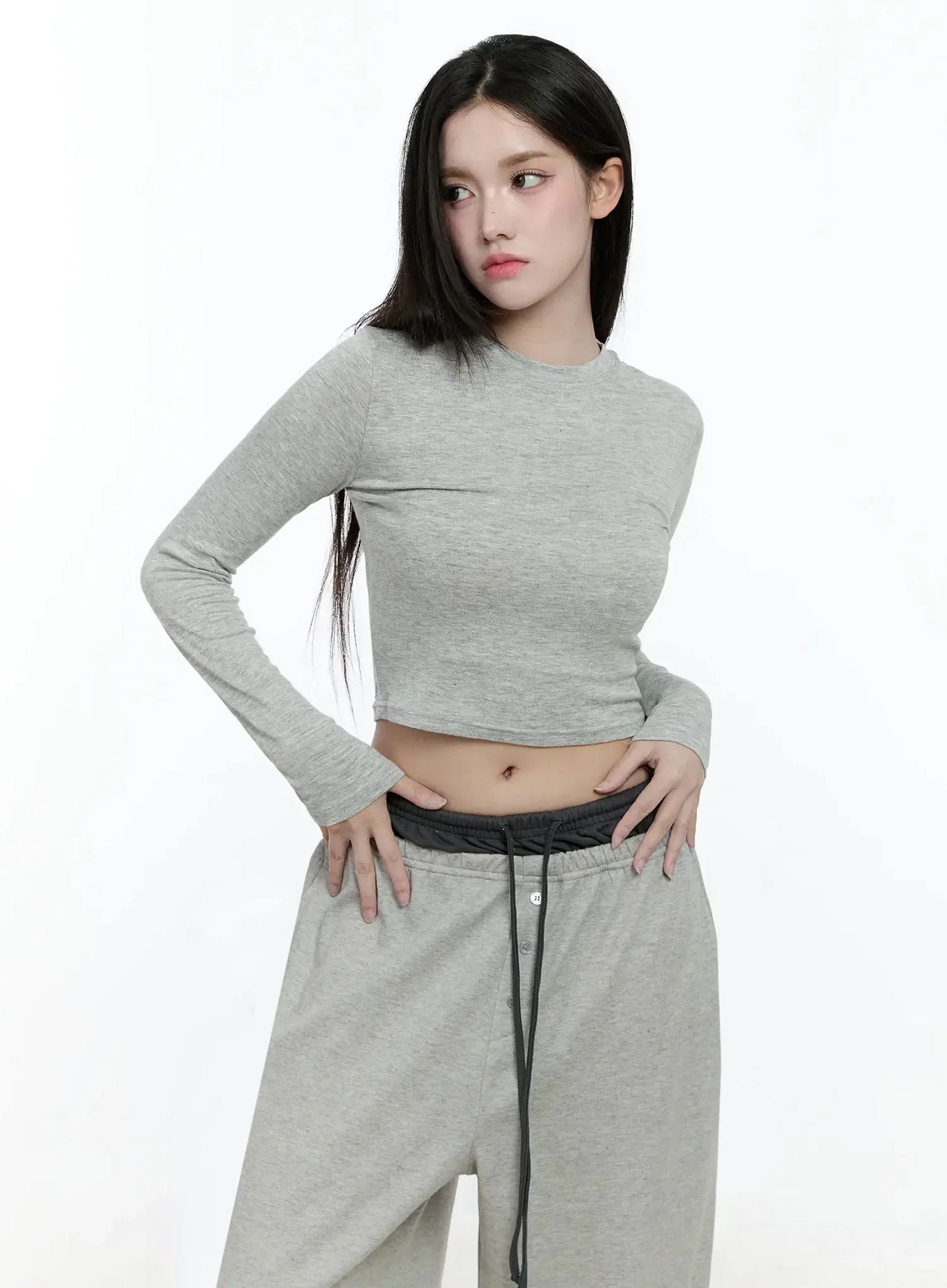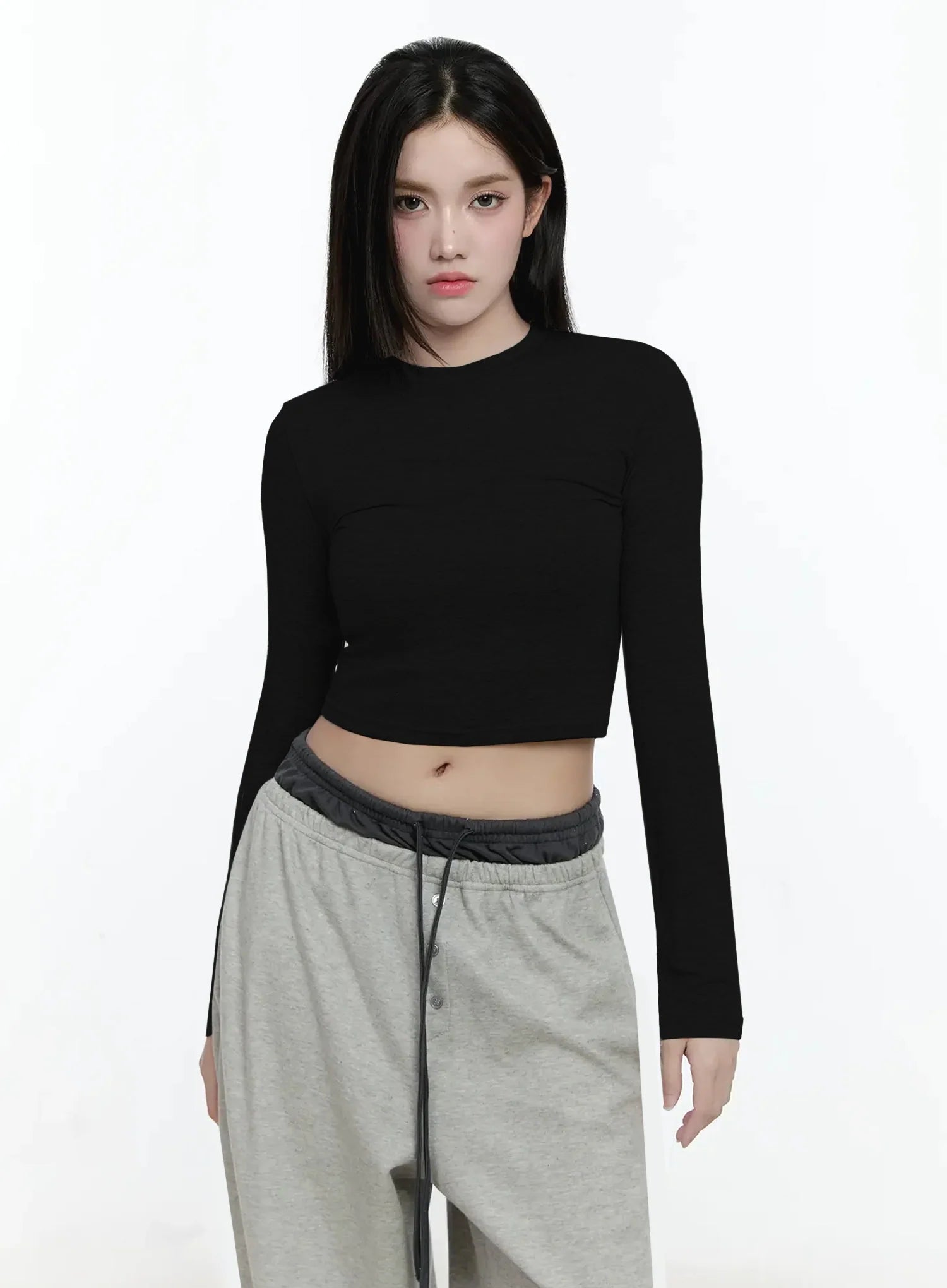 Casual Long Sleeve Crop Tee IO527
