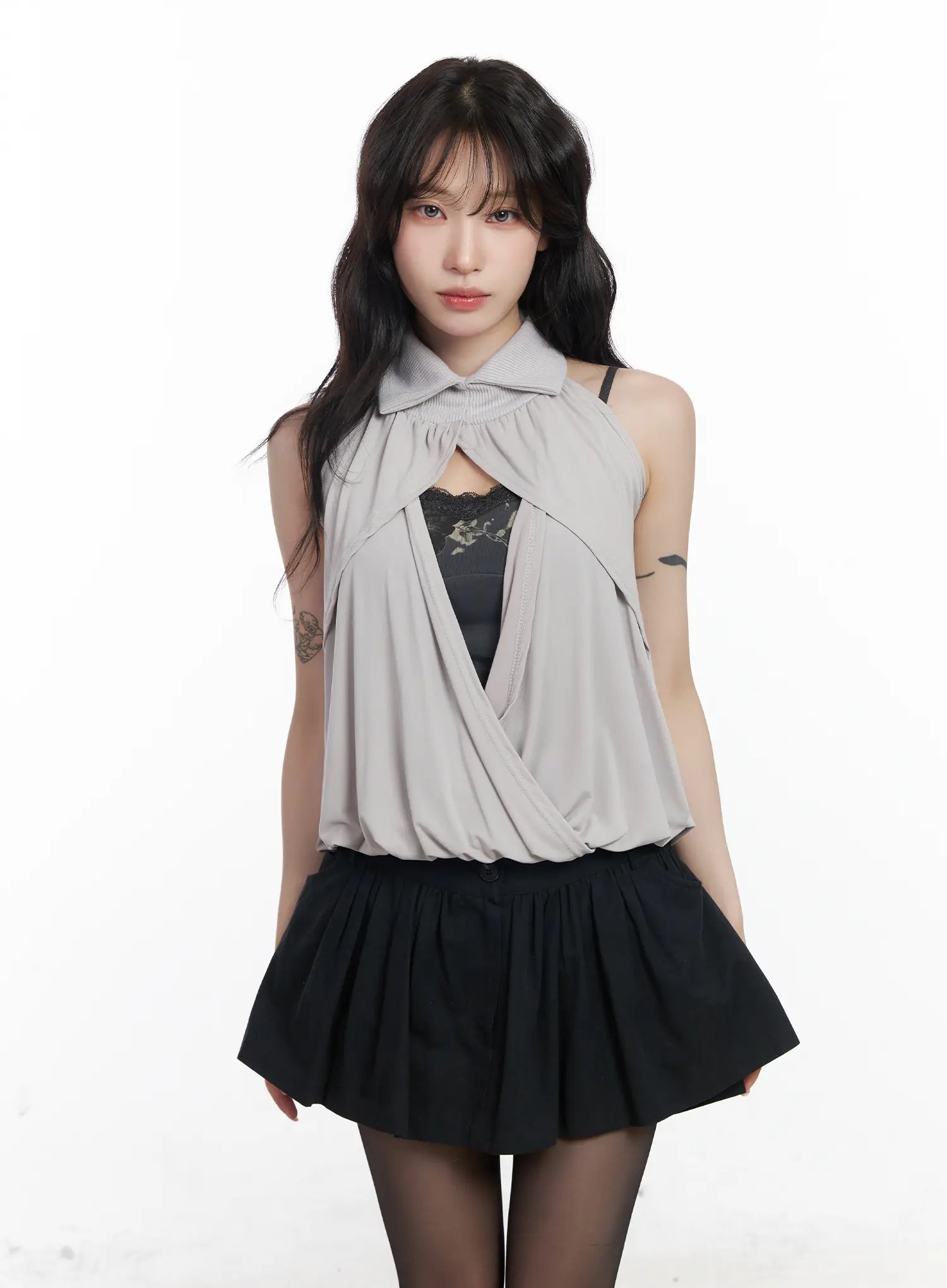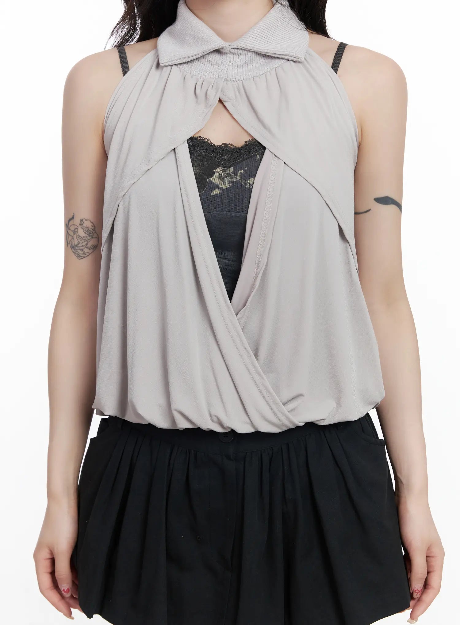Chic Drape Collar Sleeveless Top CJ526
