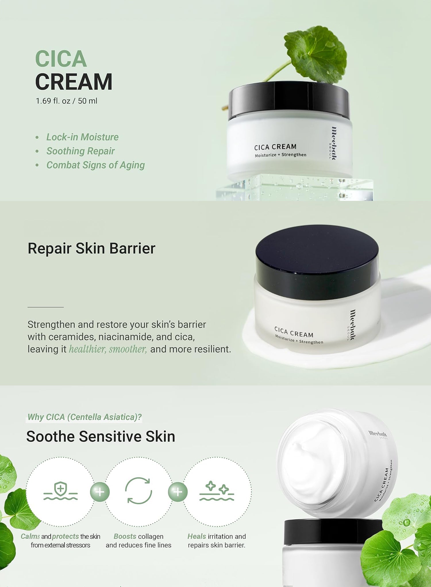 Centella asiatica rich moisturizer calms redness and reinforces skin barrier