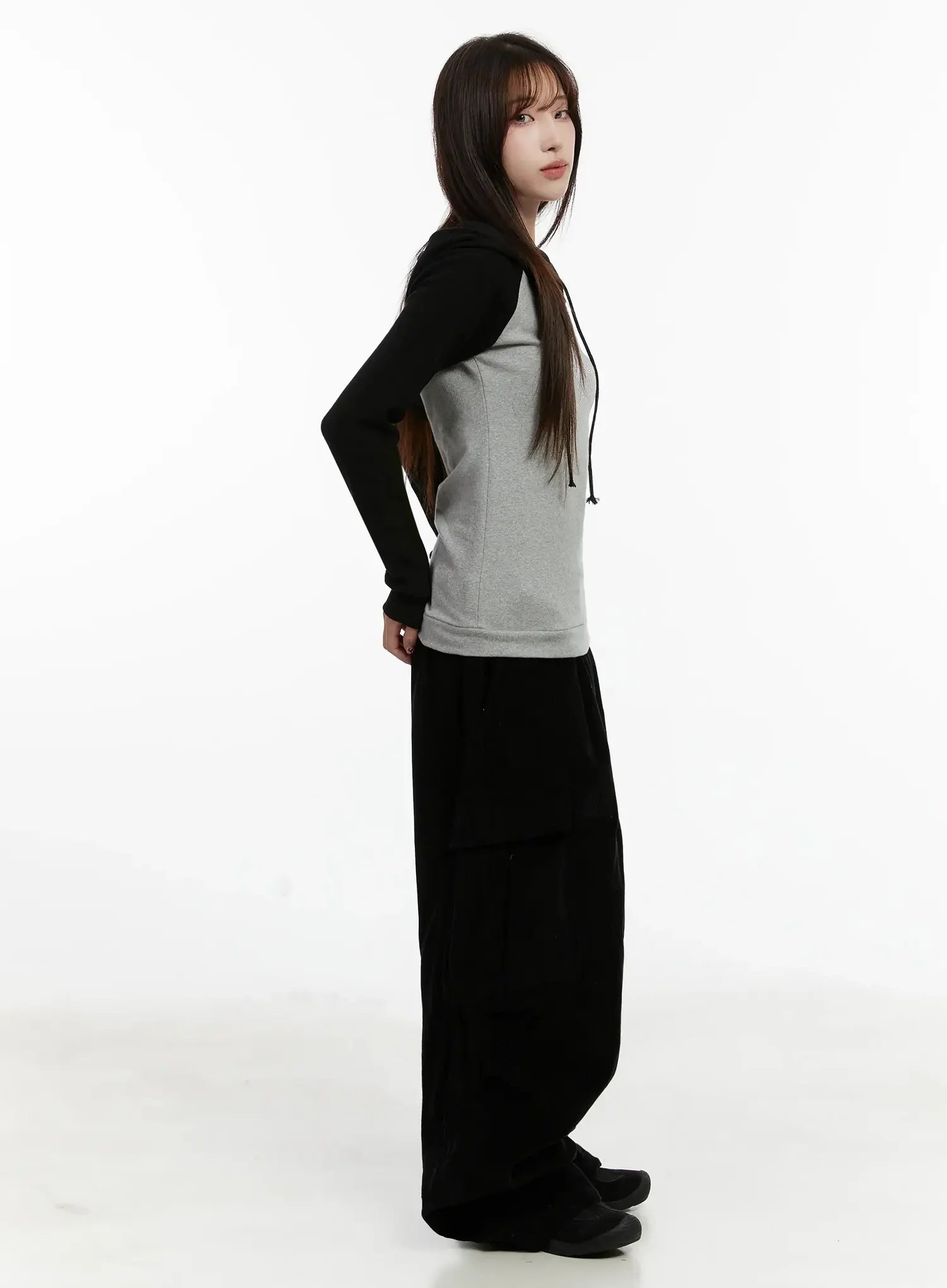 Model is wearing size M/L and the color Black.
