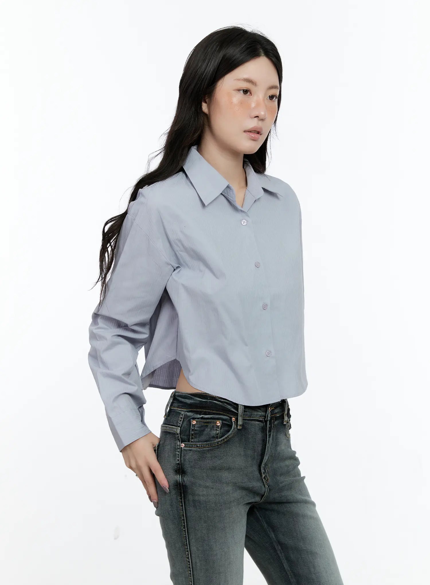Cropped Button-Up Blouse CN517