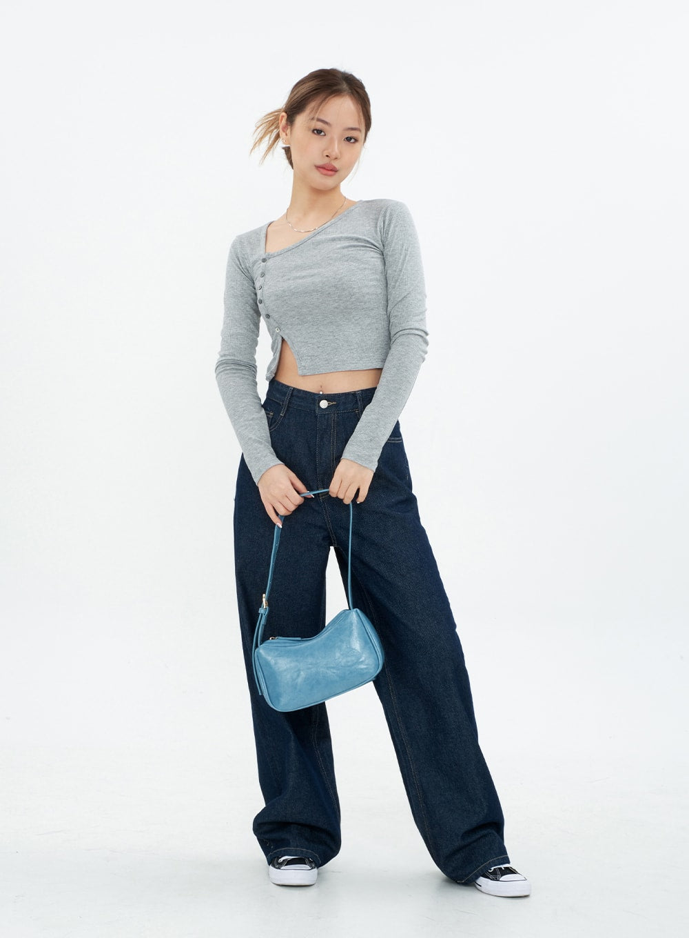 Cropped Cardigan with Diagonal Buttons CM22