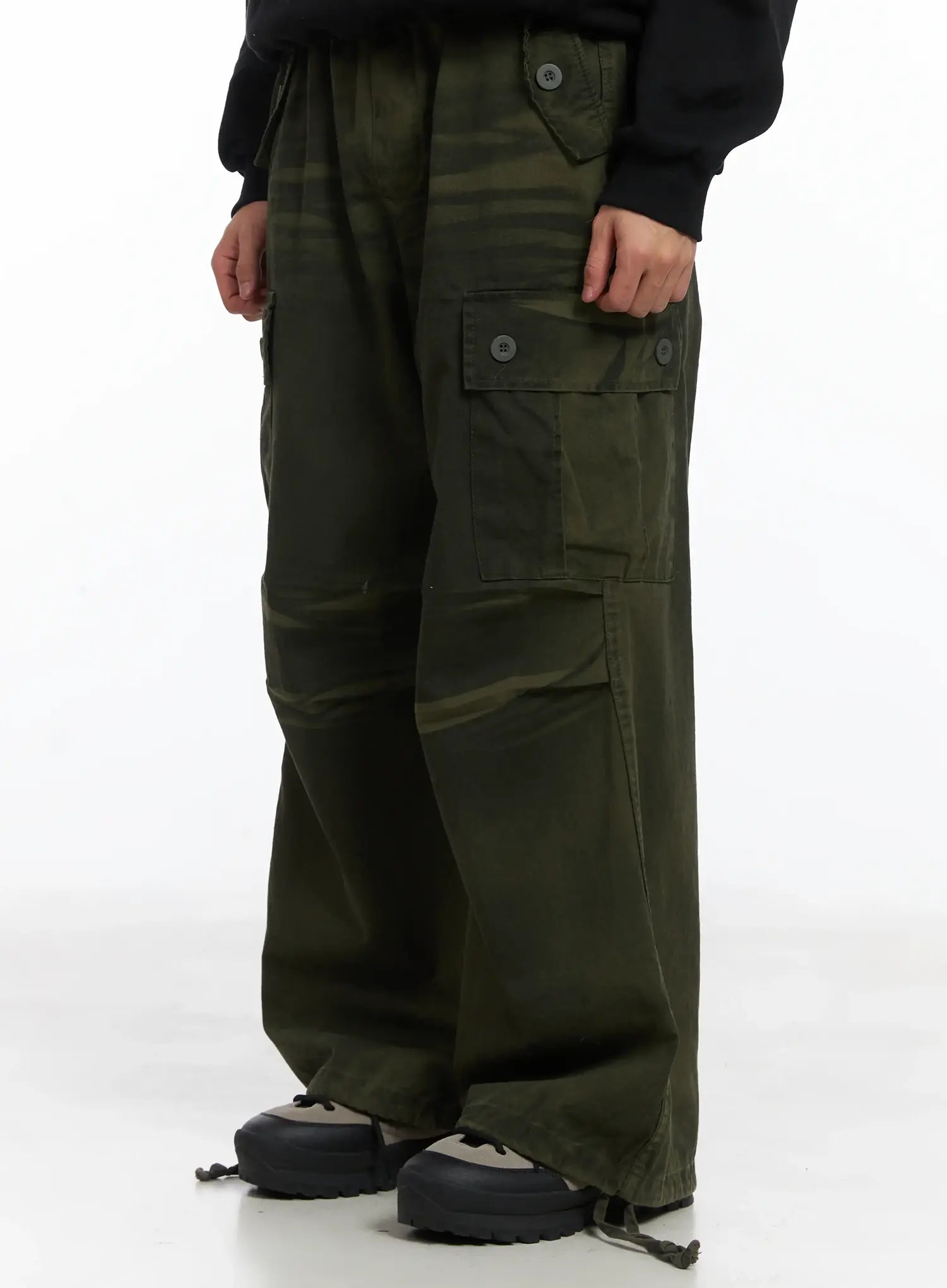 Dark Green Wide Cargo Pants ID515