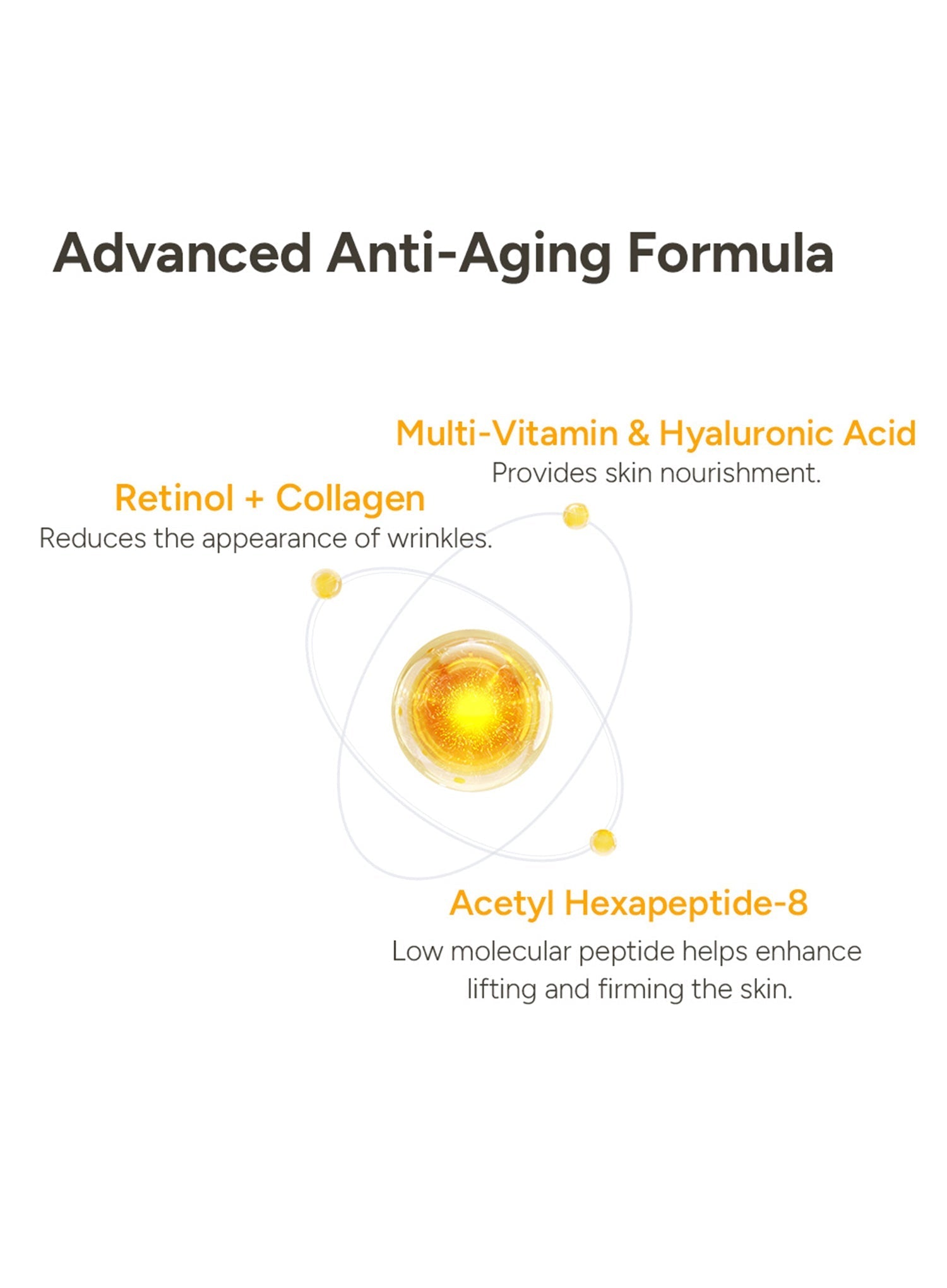 - Retinol & volufiline improve elasticity and smooth fine lines