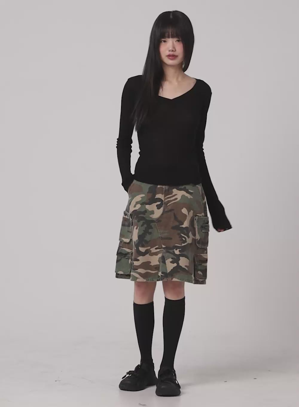 Denim Camo Cargo Midi Skirt CM412