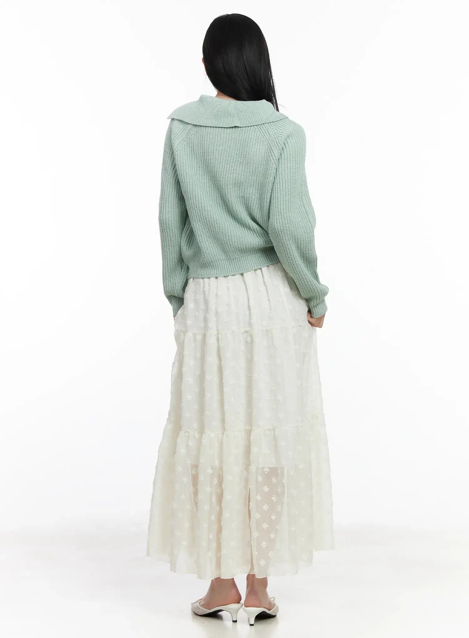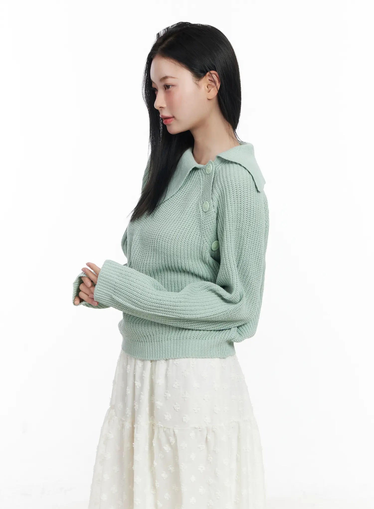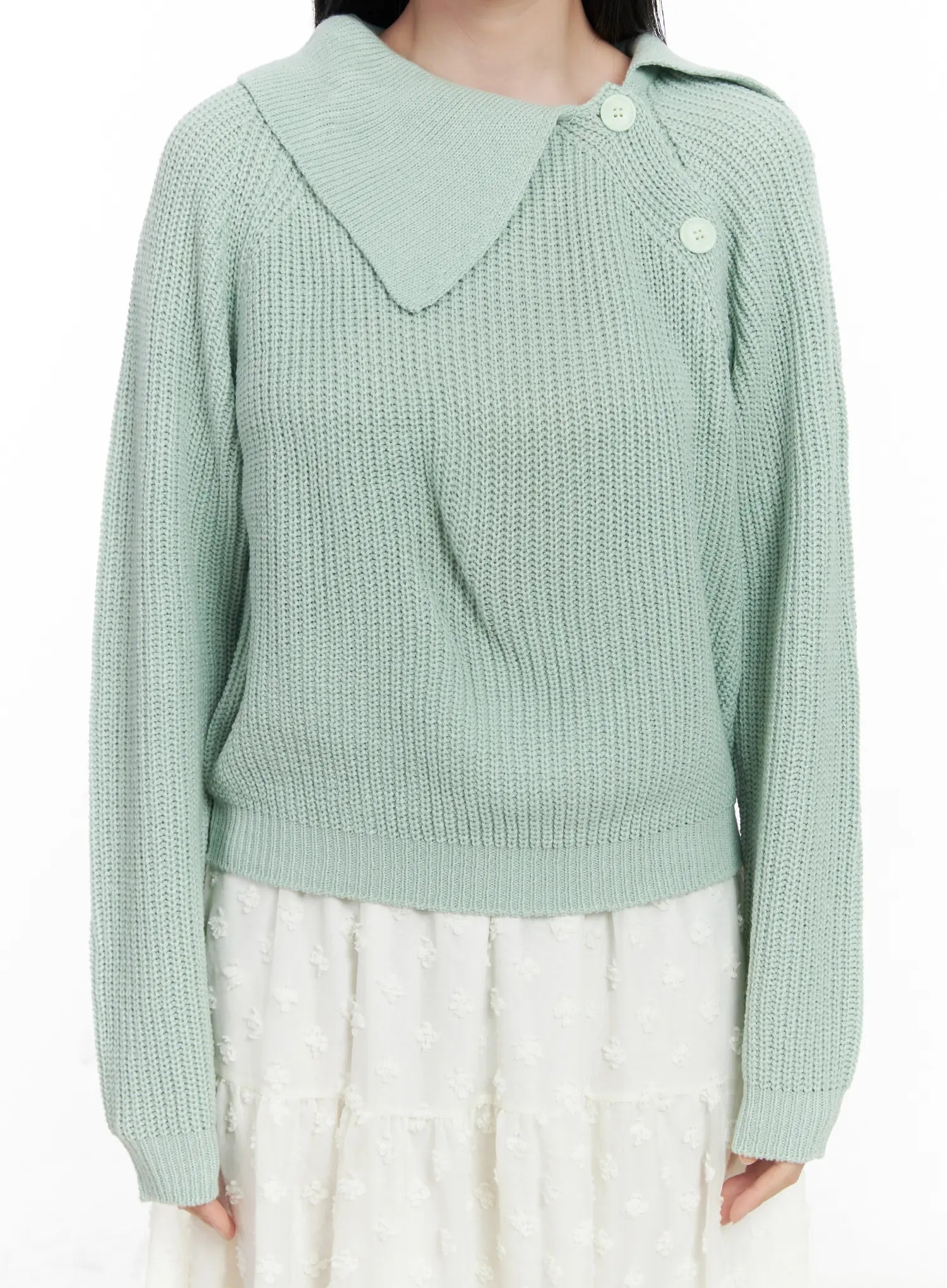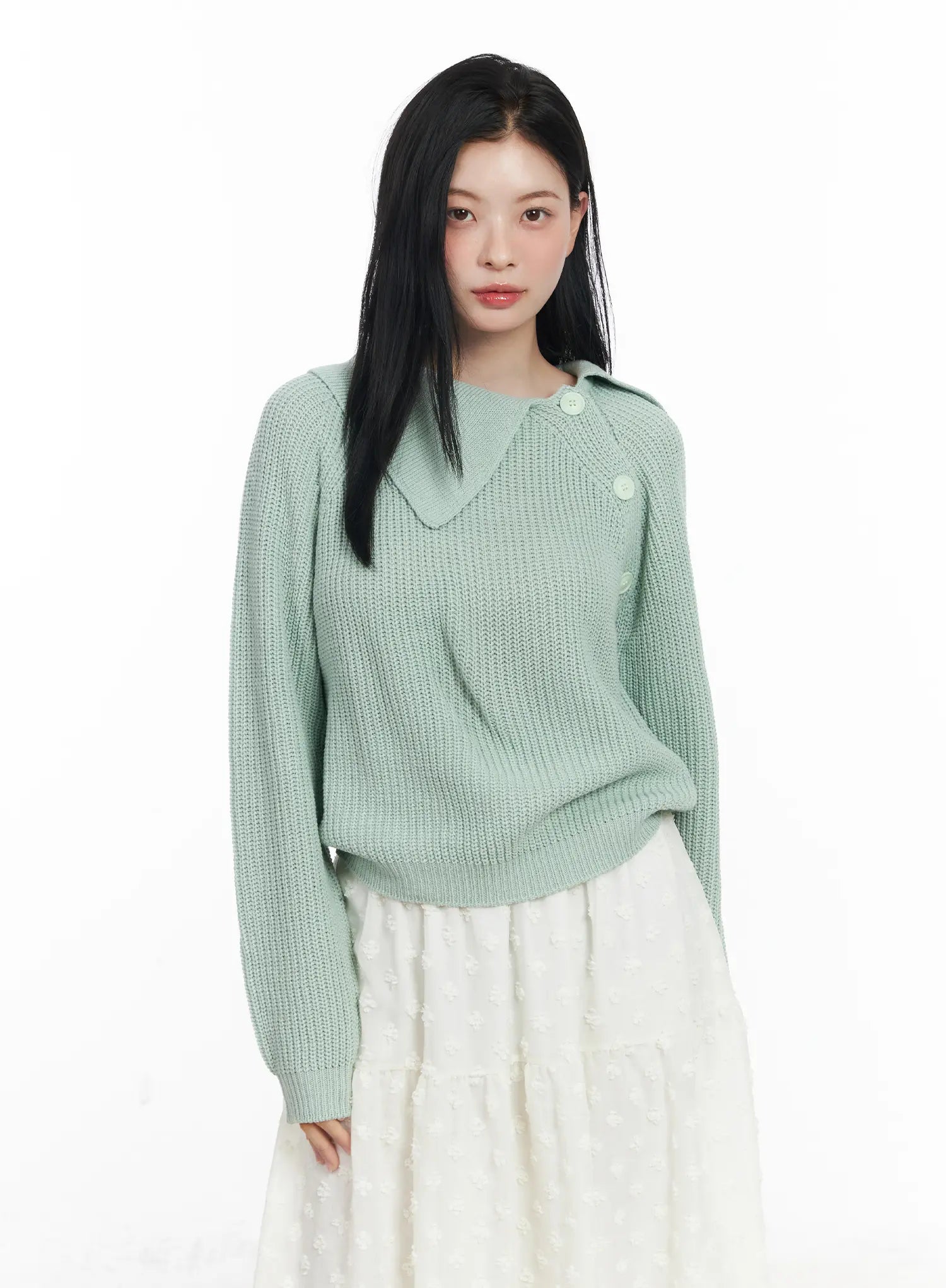 Diagonal Button Collar Knit Top CJ519