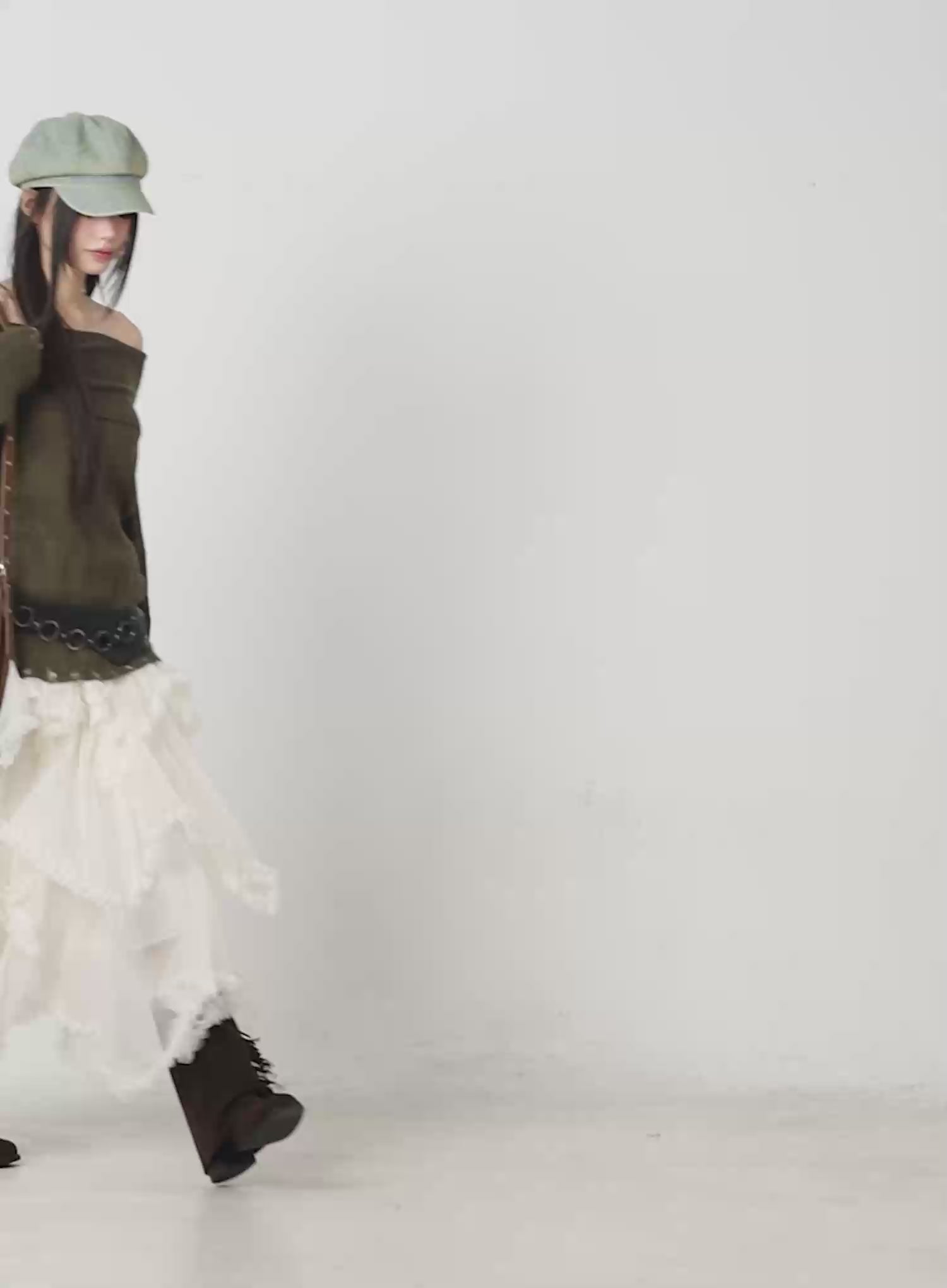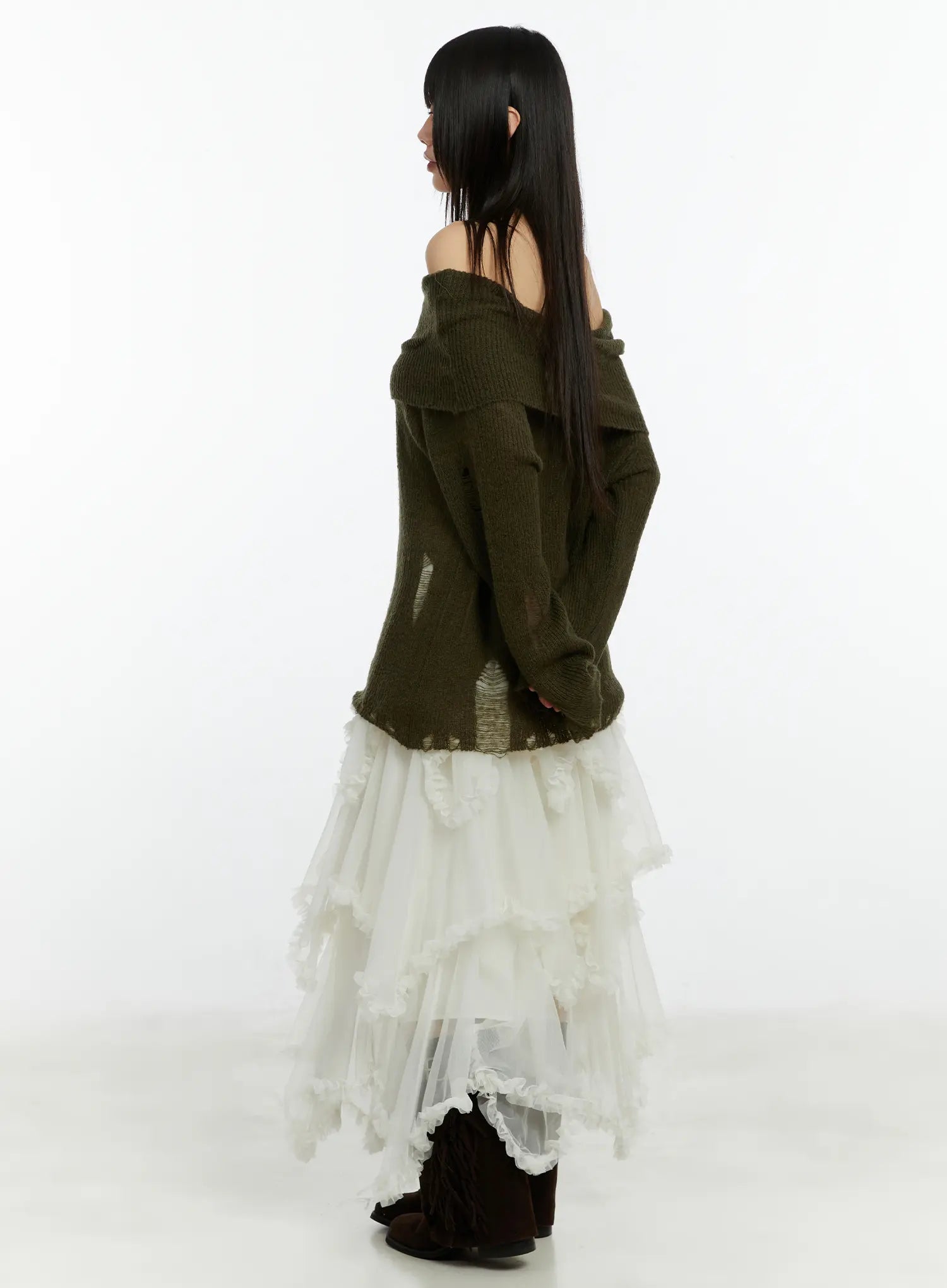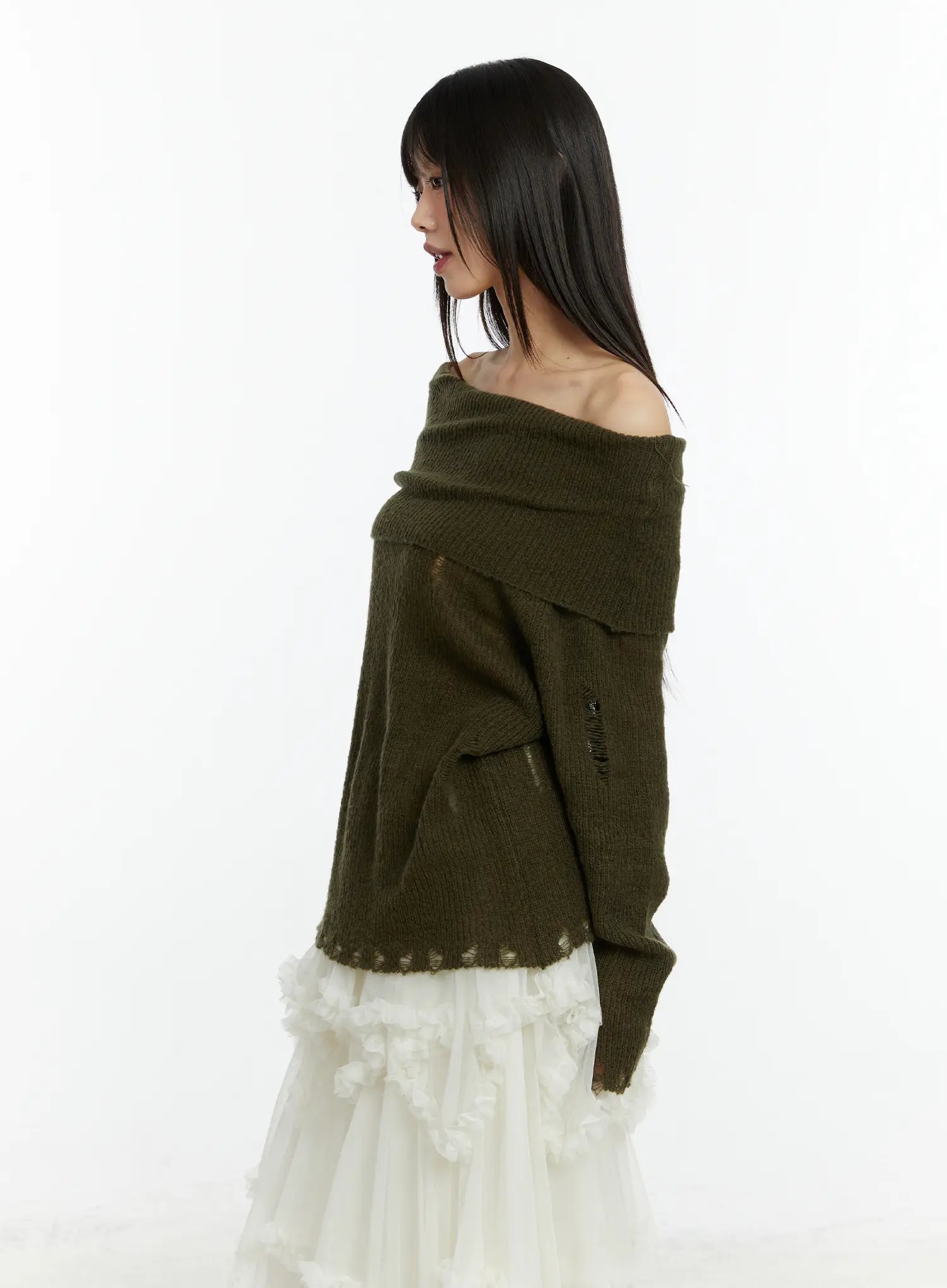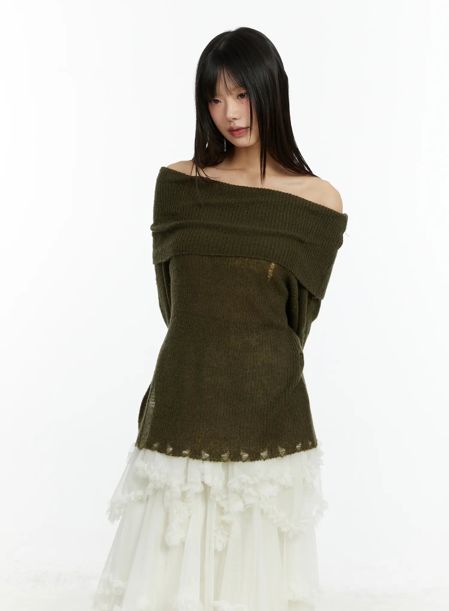 Distressed Off-Shoulder Knit Top CF510
