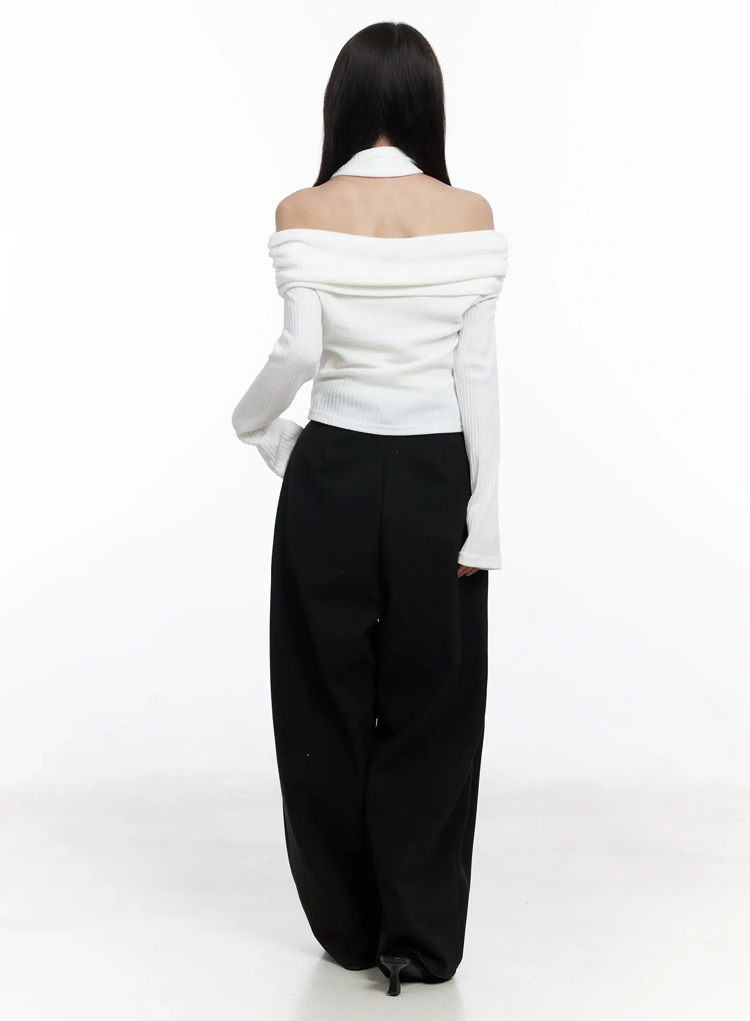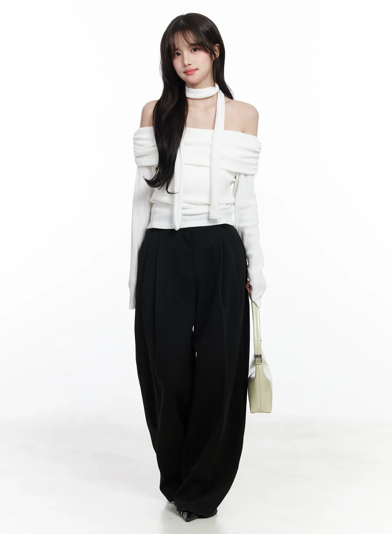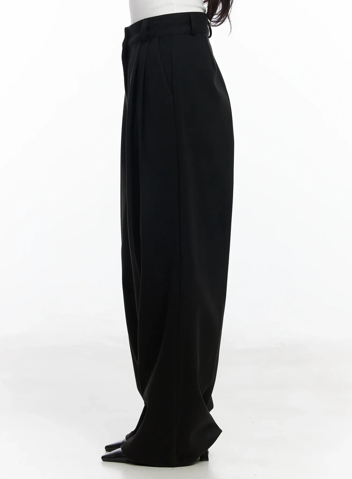 Double-Pleated Wide Fleece-Lined Slacks IJ529