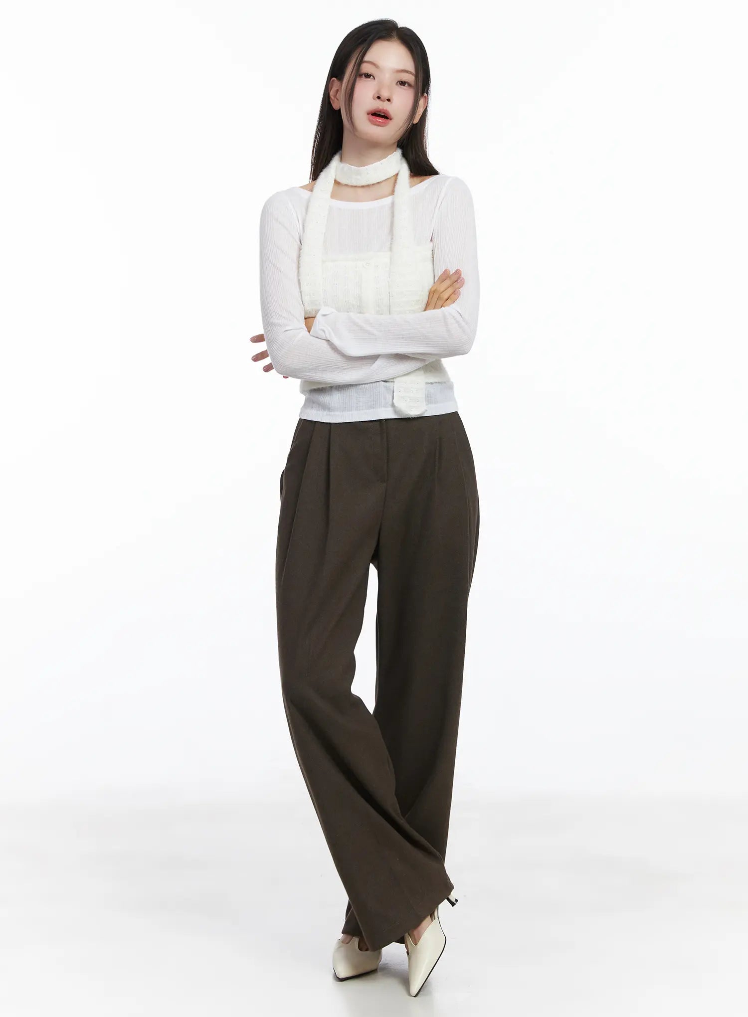 Elastic Waistband Wide-Leg Trousers CJ506