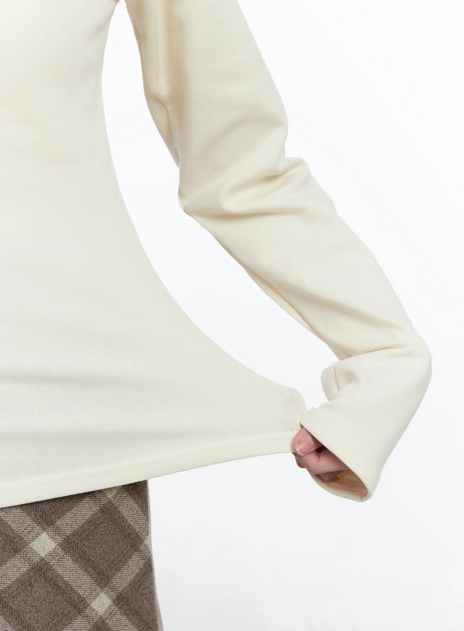 Model is wearing size S/M and the color Light beige.