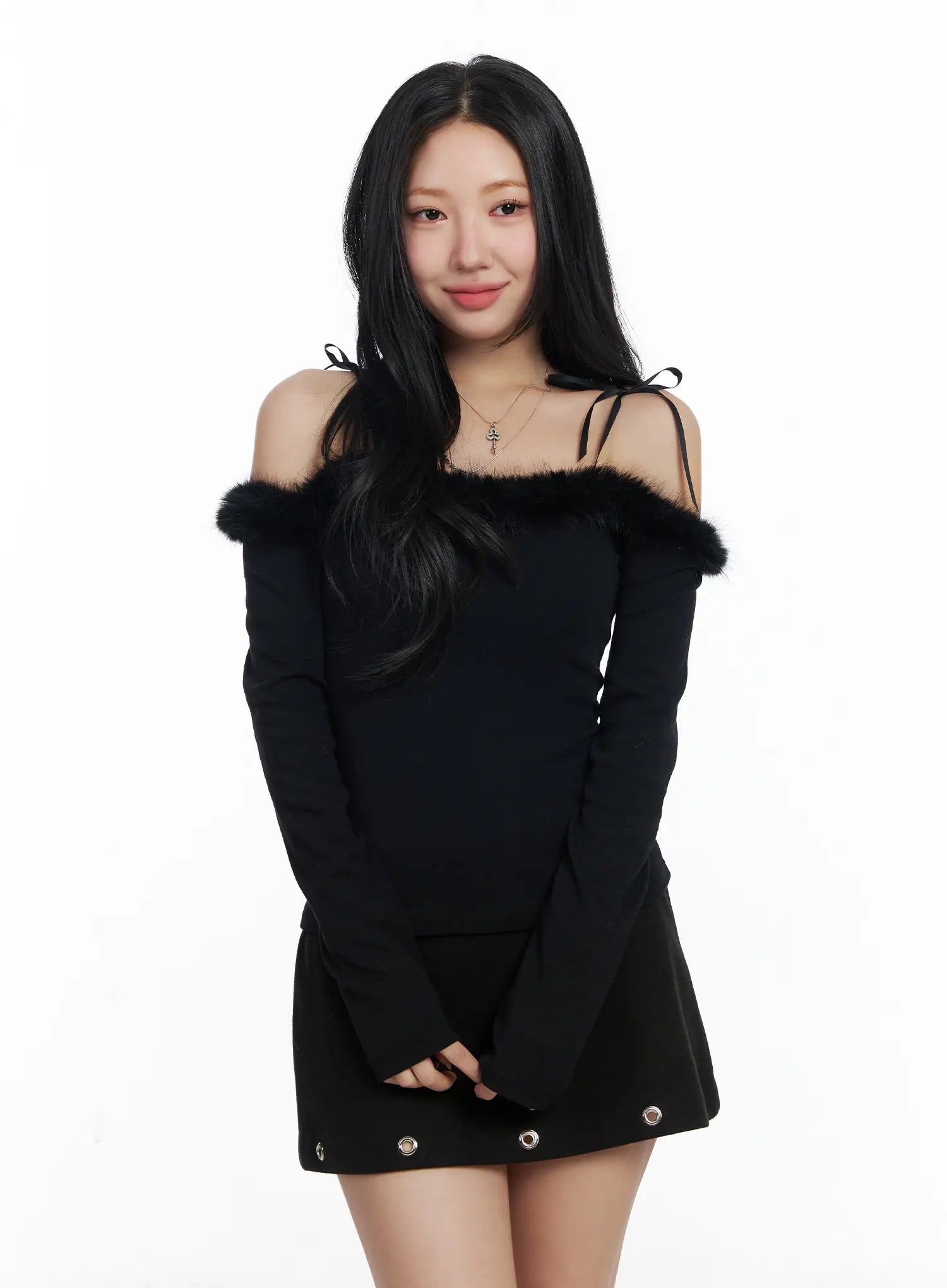 Faux Fur Off-Shoulder Long Sleeve Top CJ515