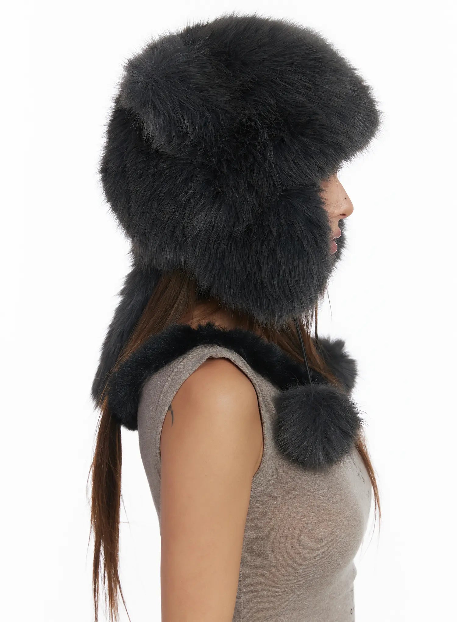 Model is wearing size One Size and the color Dark gray.