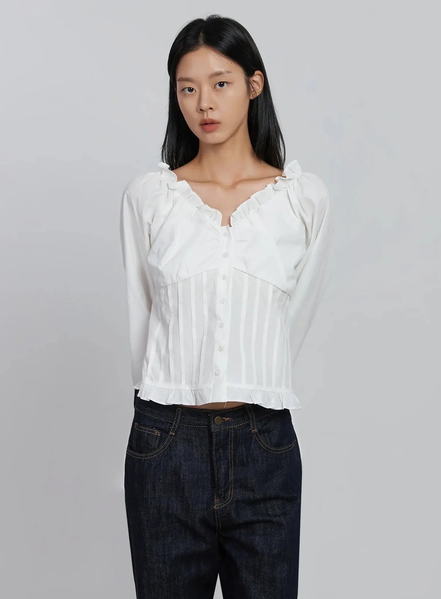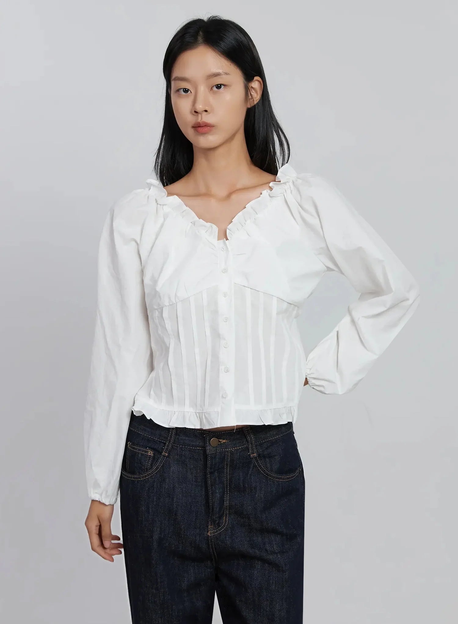 Frill Button Up Blouse ID504