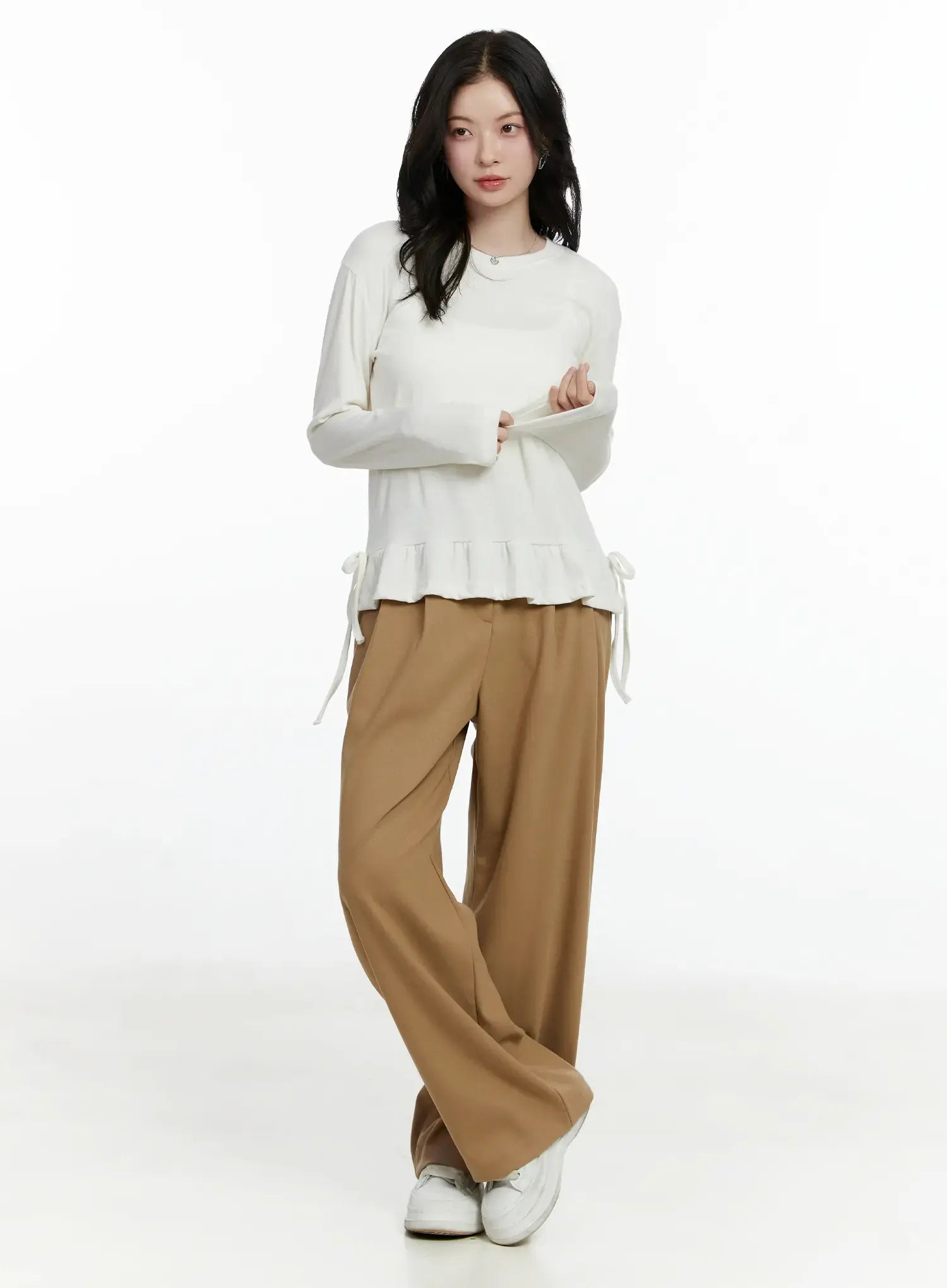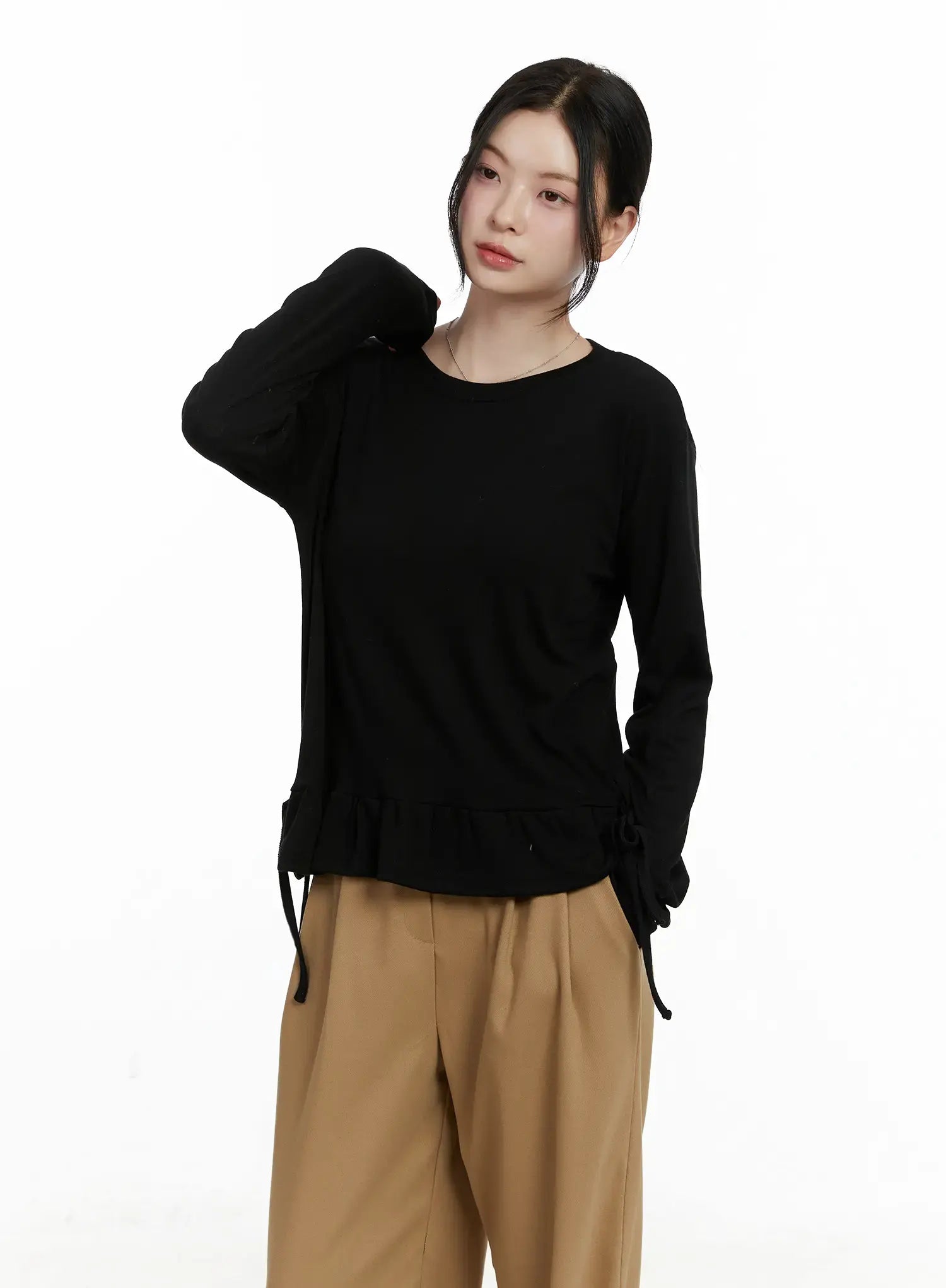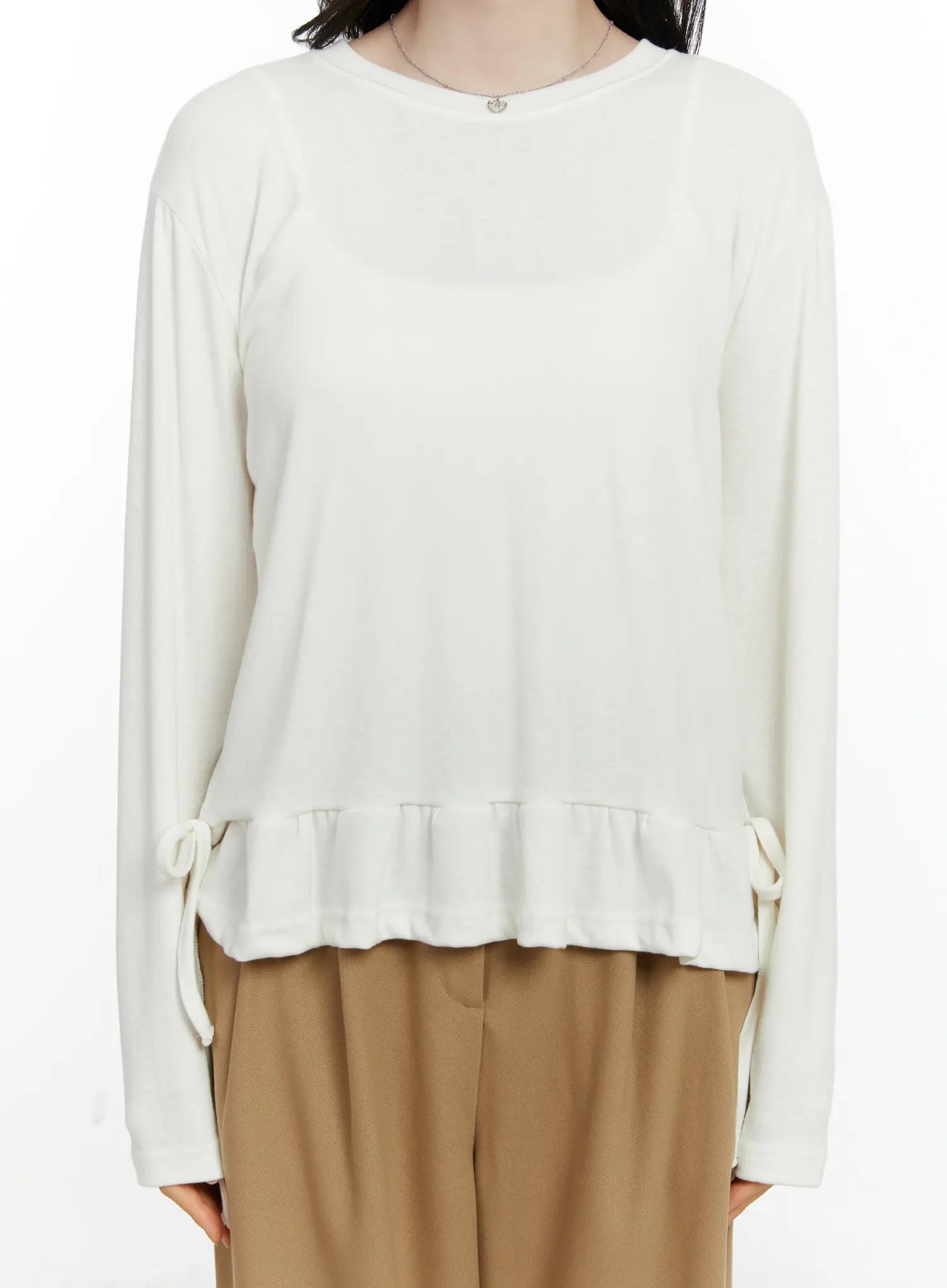 Frill Ribbon Long Sleeve Top F502