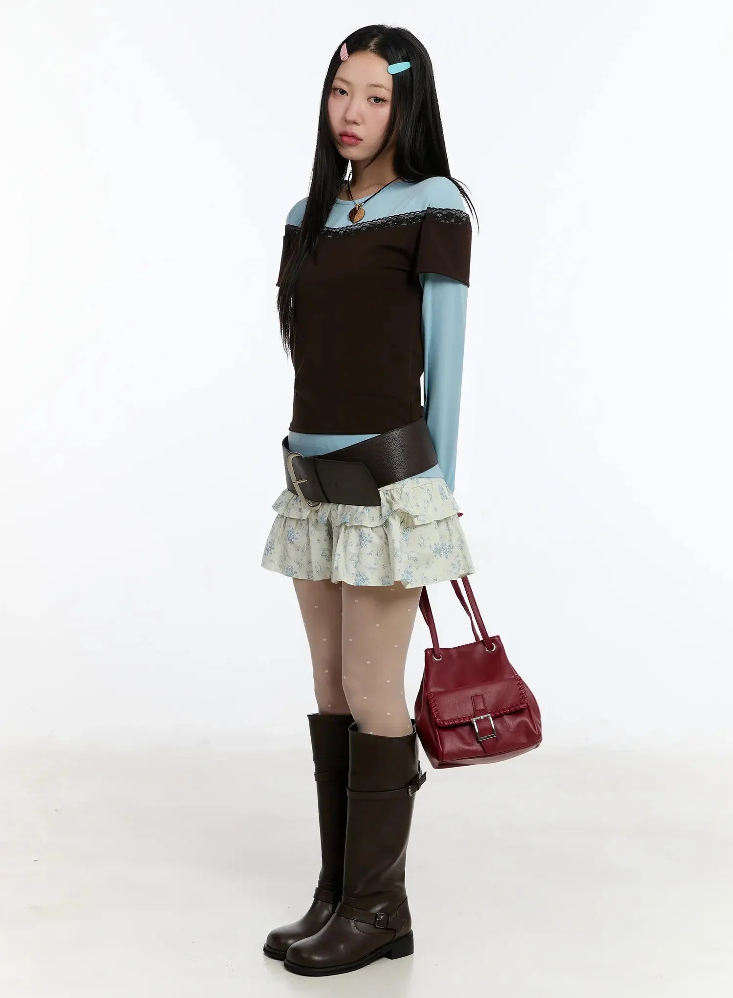 Model is wearing size One Size and the color Dark red.