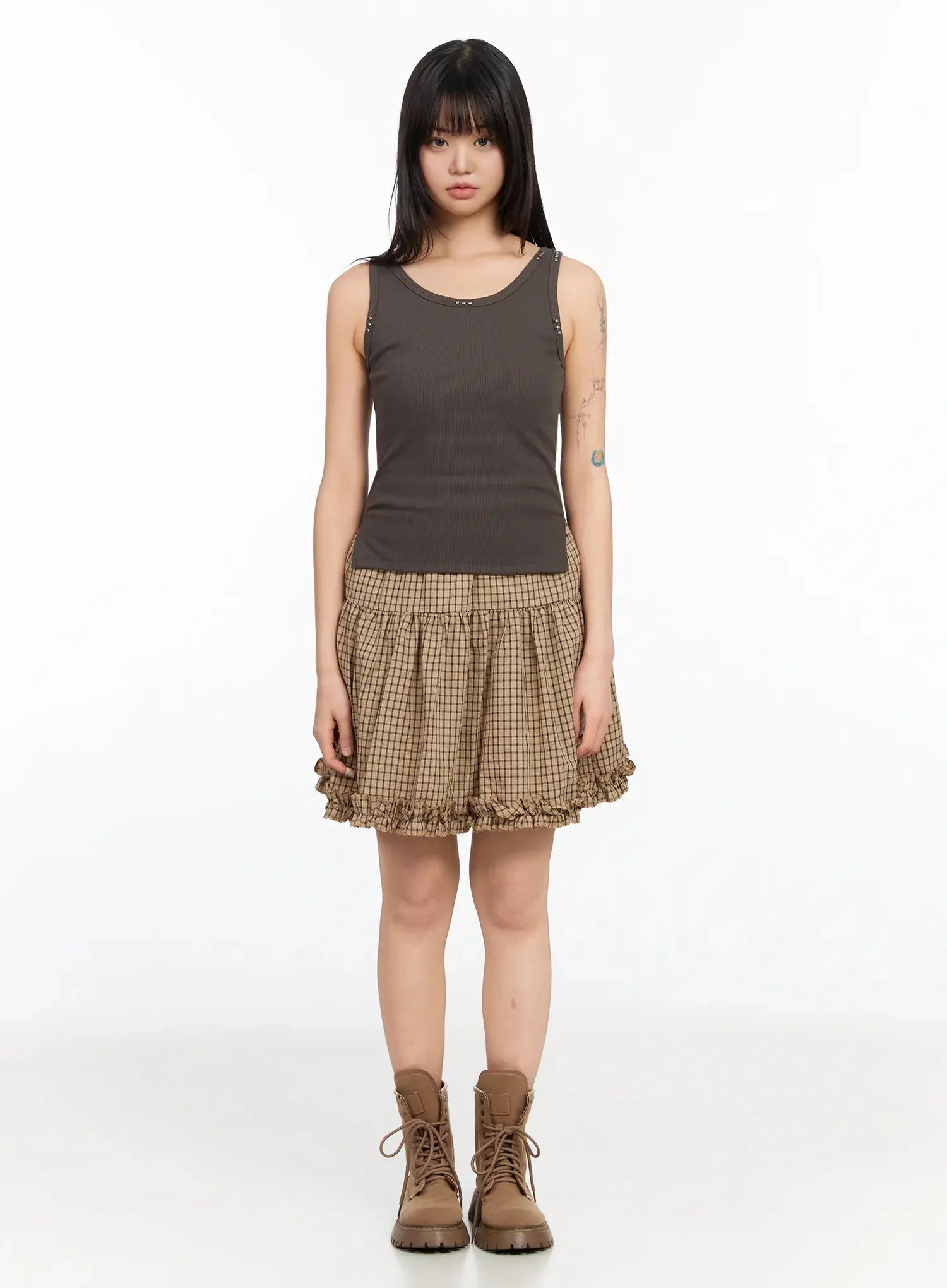 Gingham Frill Midi Skirt IA523