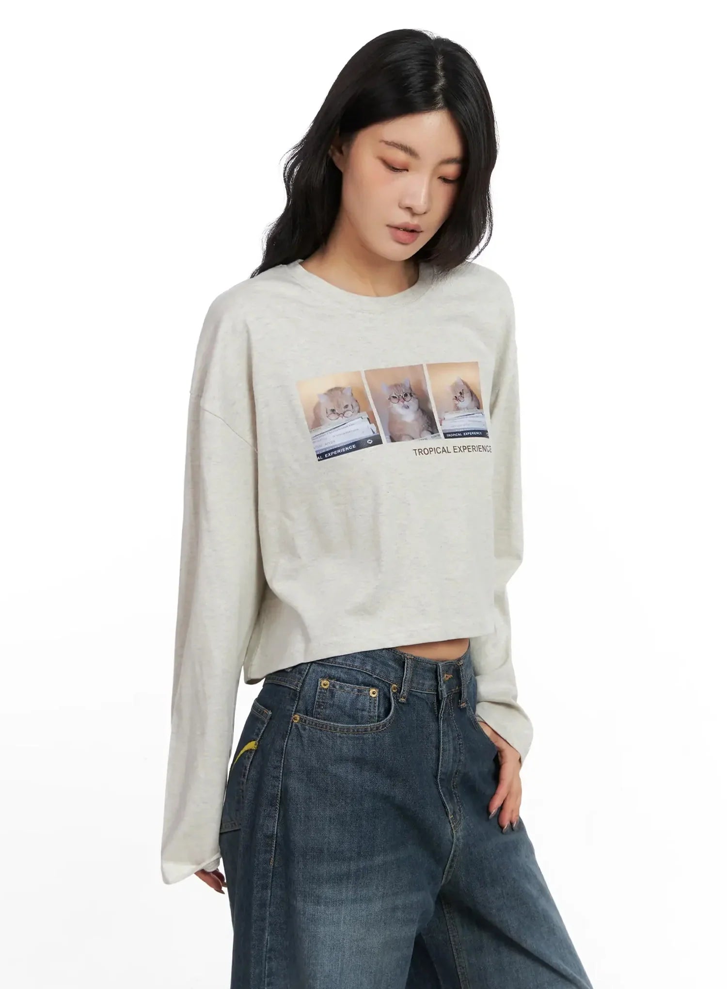 Graphic Crop Long Sleeve Top IN528