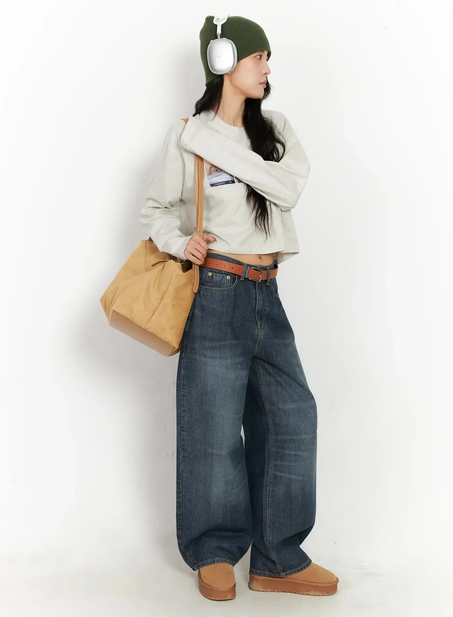 Model is wearing size S/M and the color Light beige.