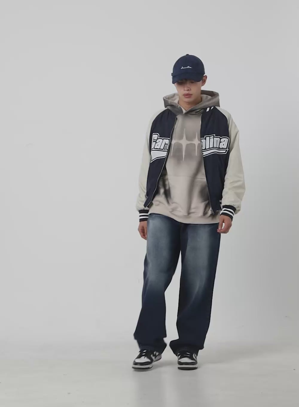 Graphic Nylon Zip Up Varisty jacket IO420