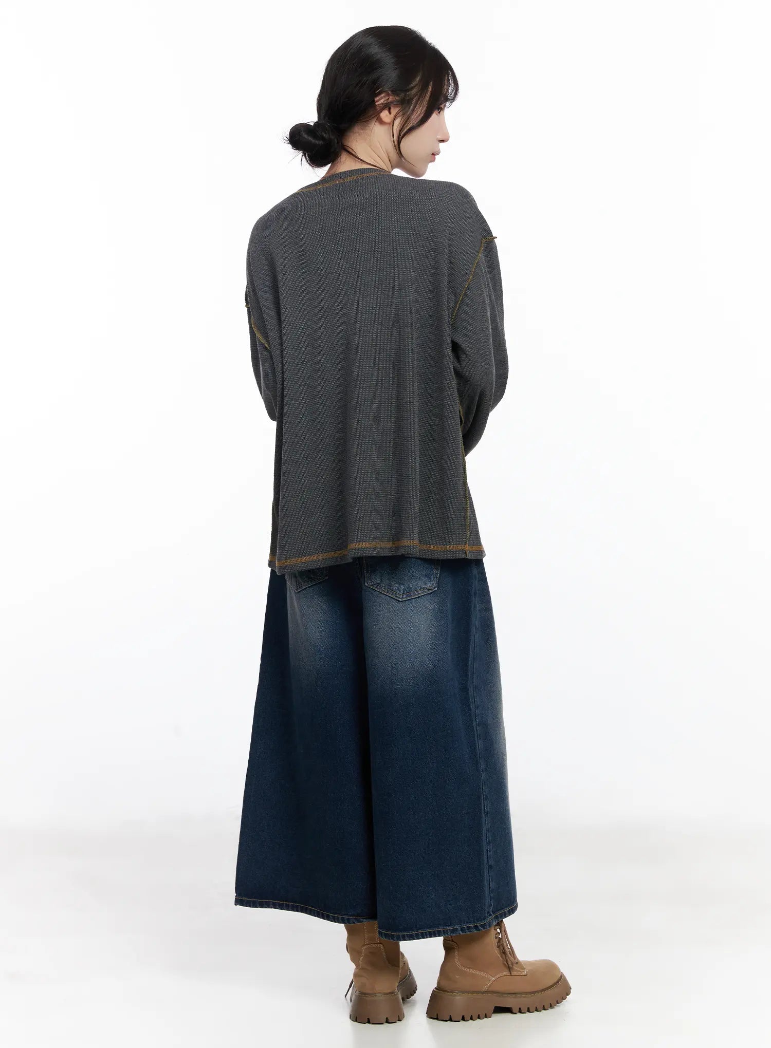 Graphic Oversized Textured Long Sleeve Top CJ527