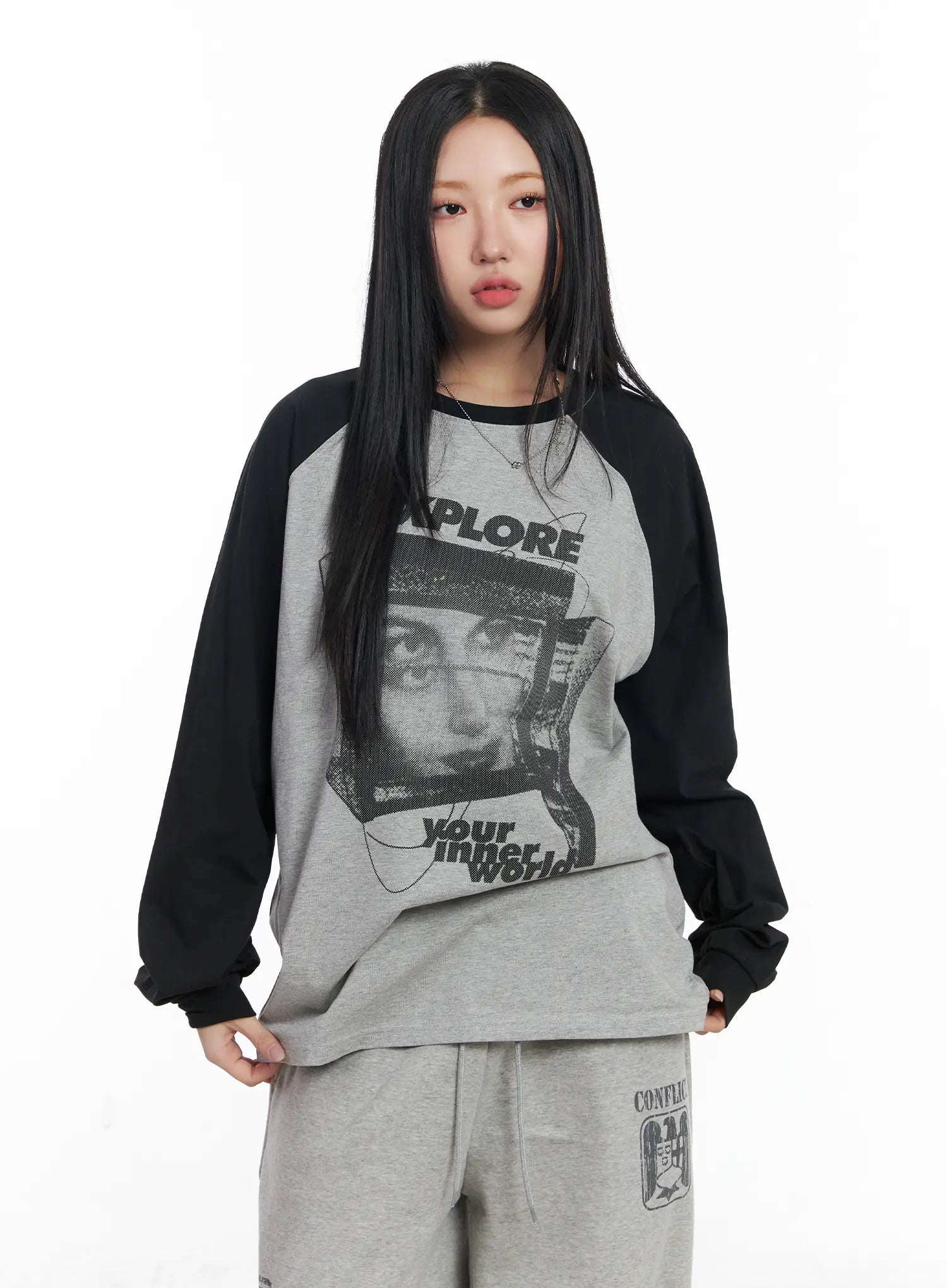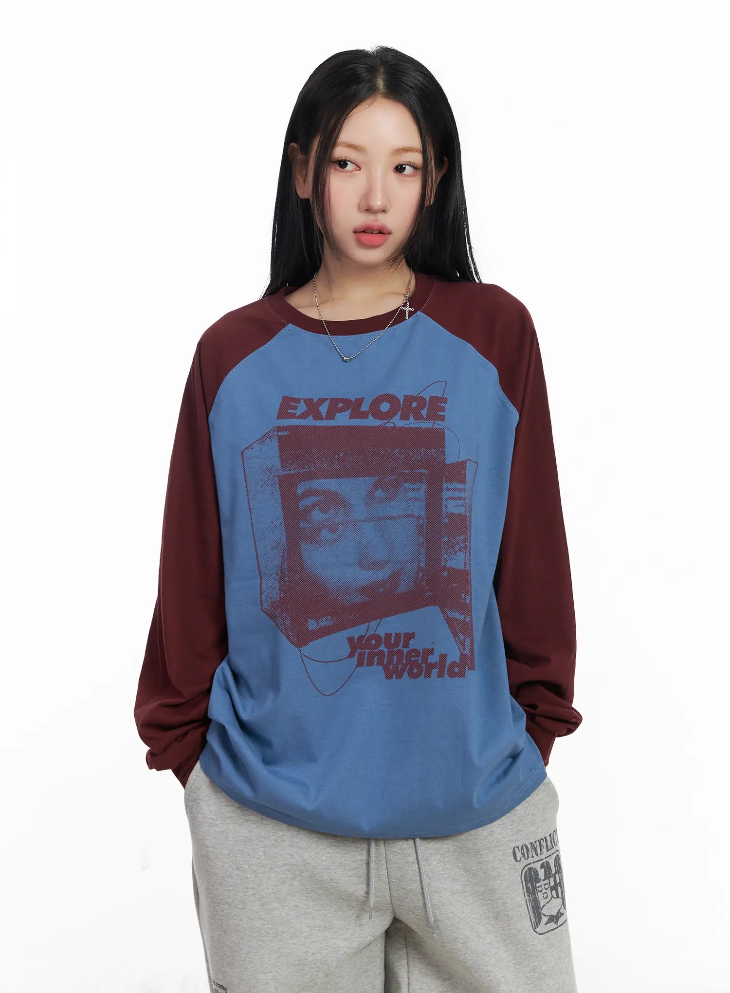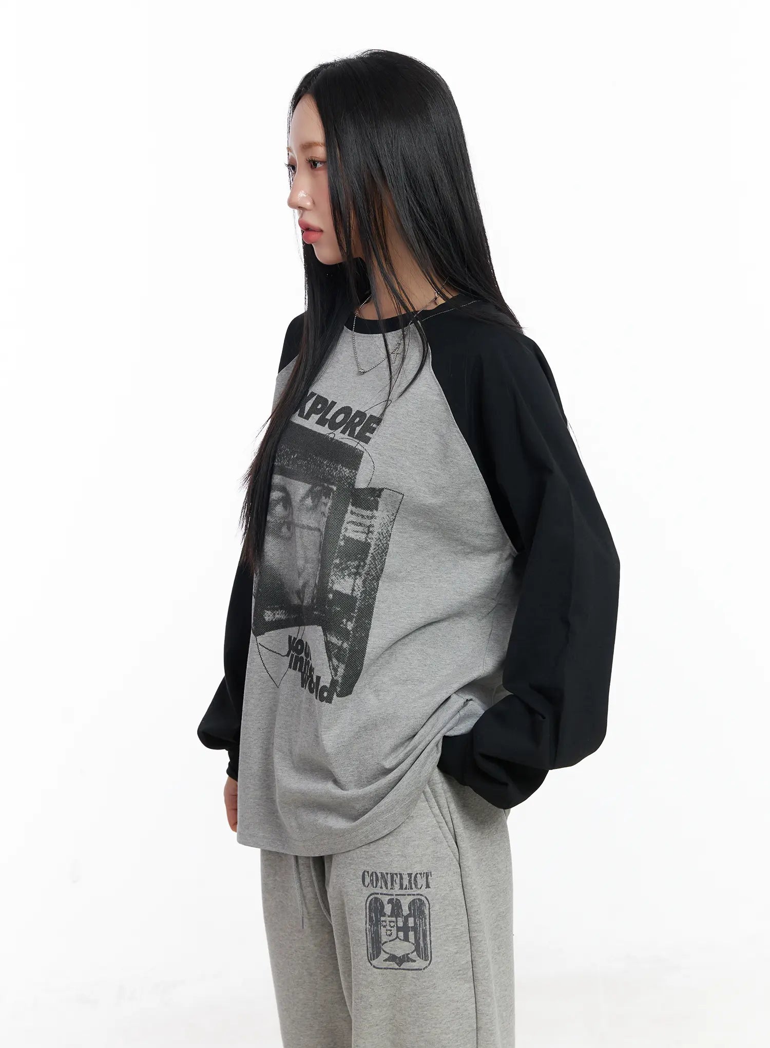 Graphic Raglan Oversized Long Sleeve Tee CJ515