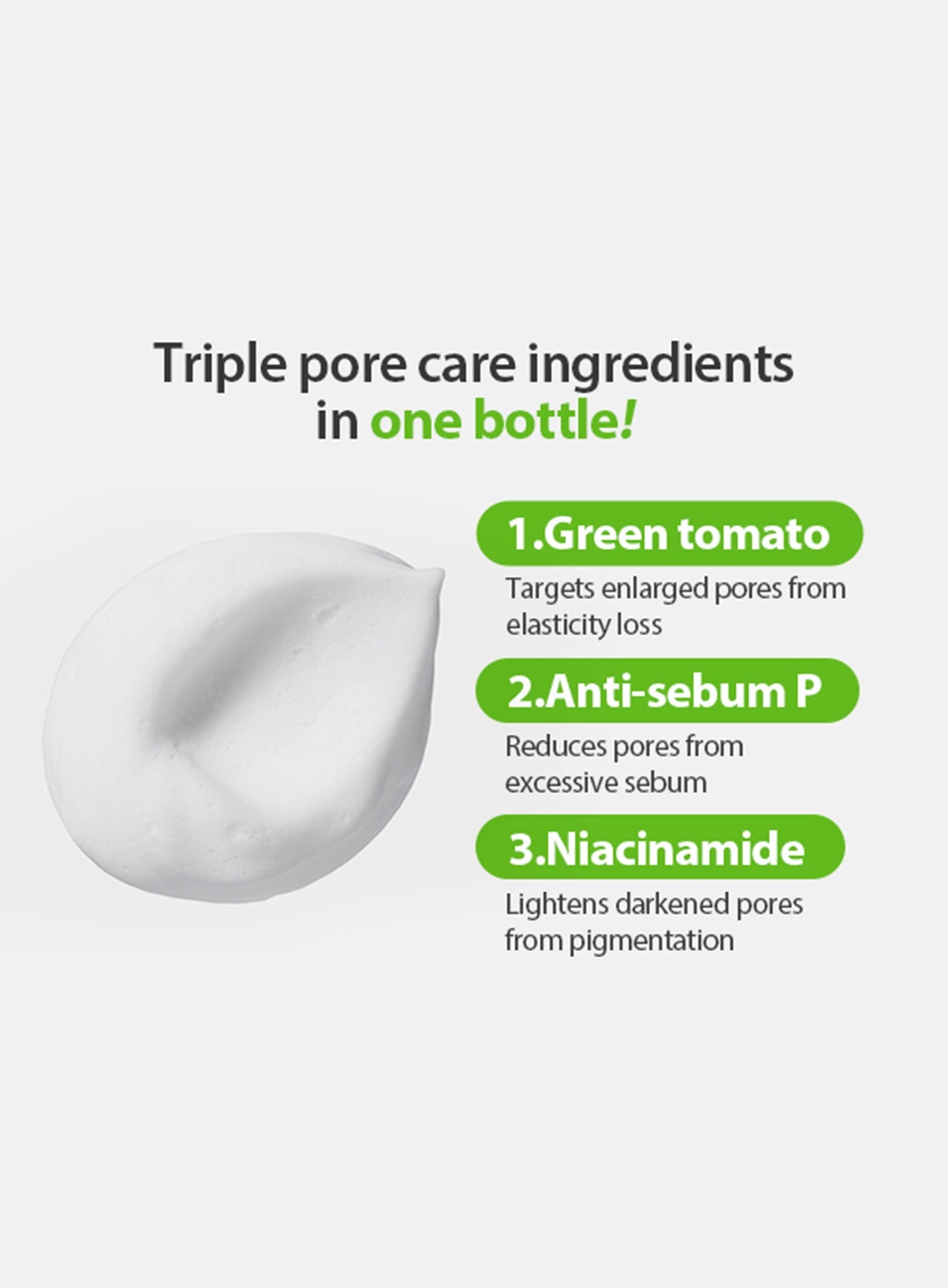 - Thick bubbles clean pores and patented green tomato extract narrows pores