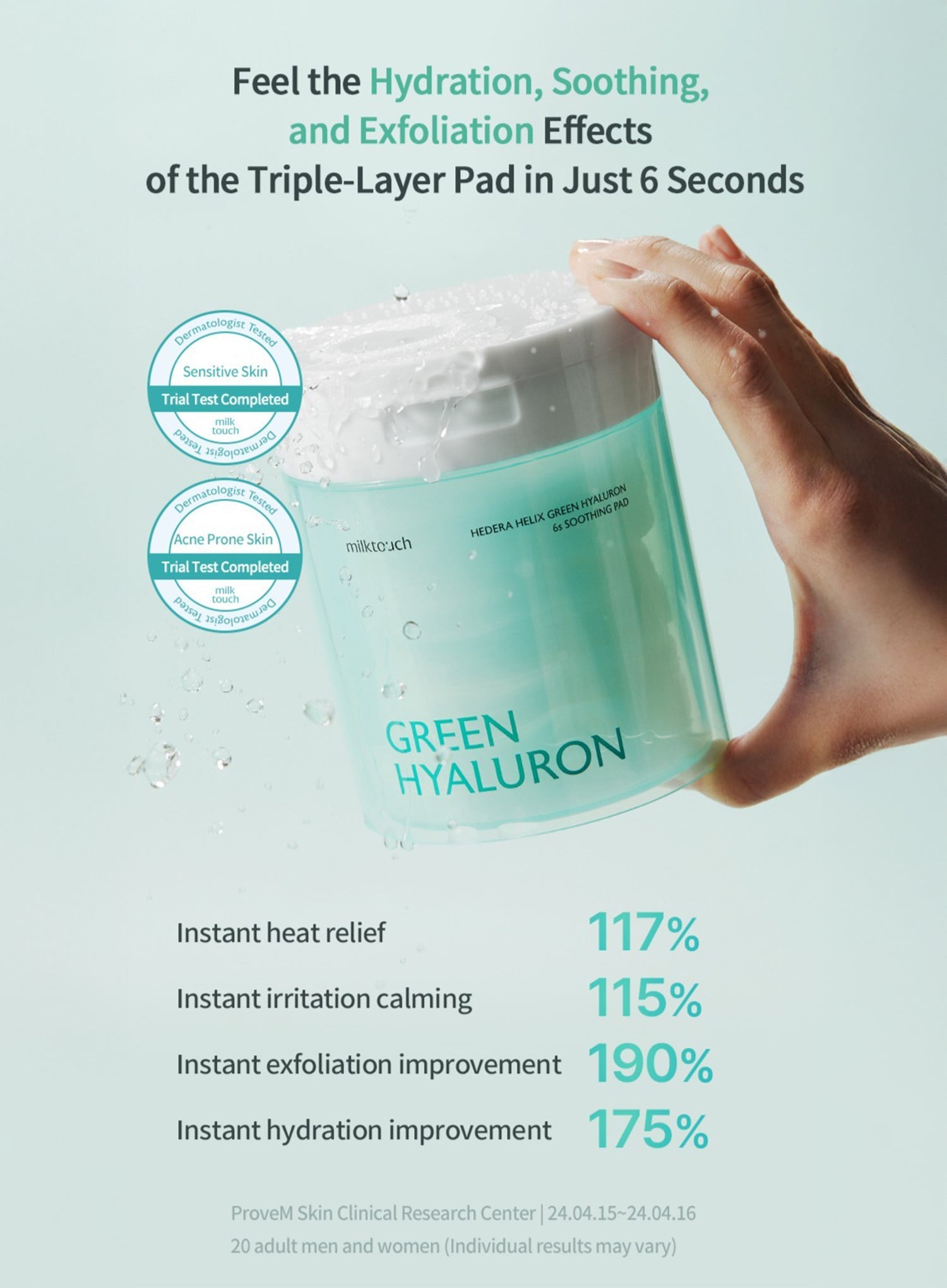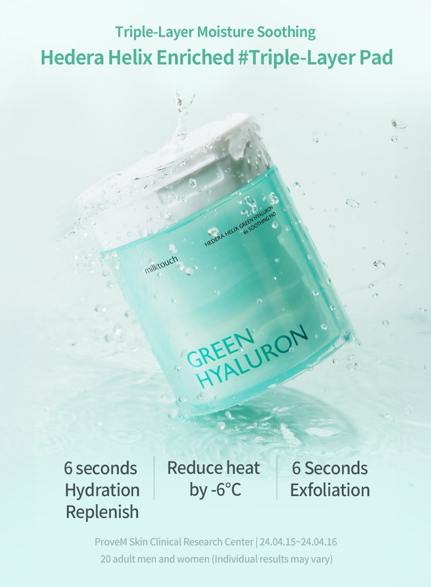 - Hedera Helix Extract and Green Hyaluron offer quick calming and moisture effects