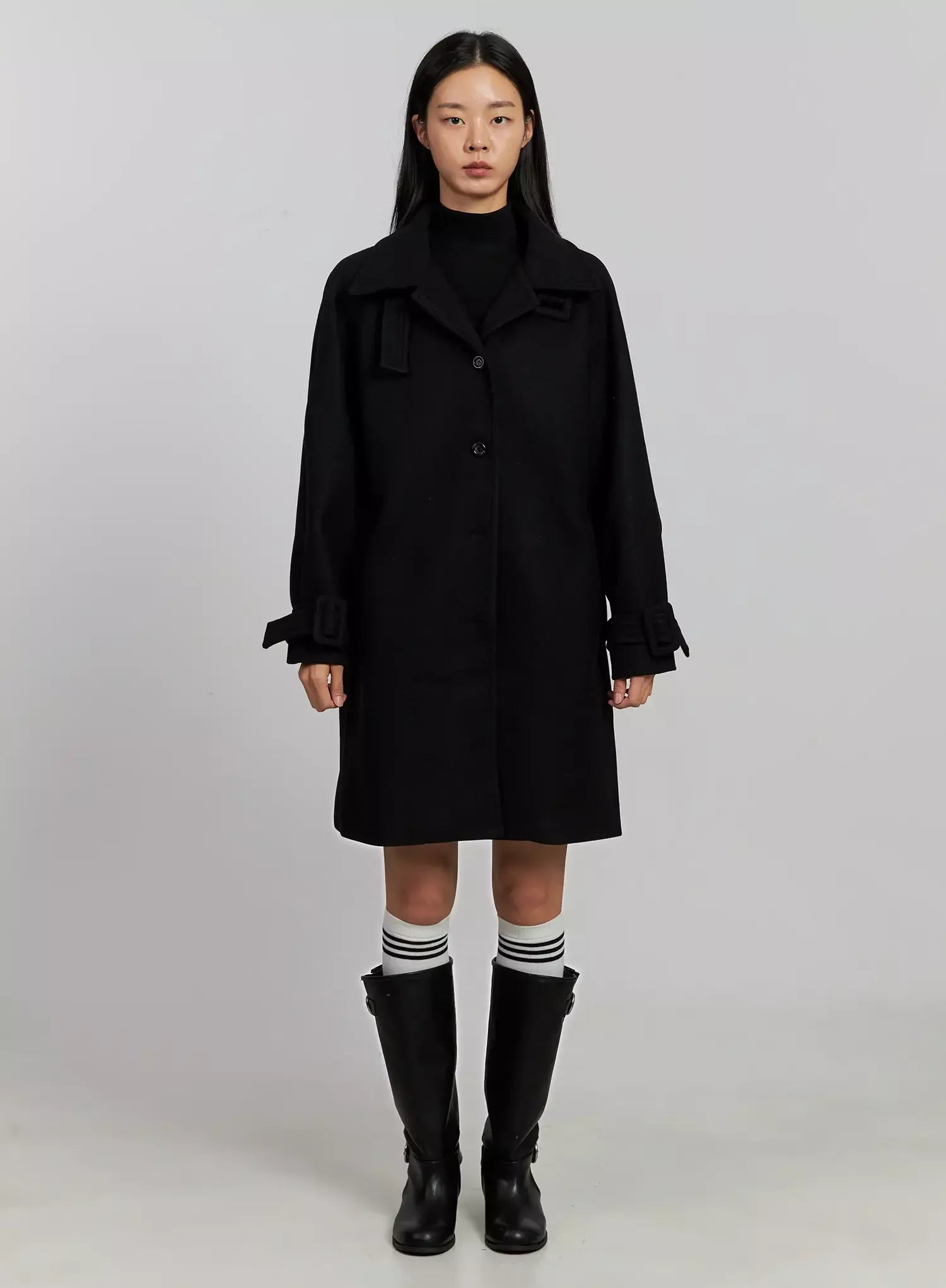 High Neck Knee-Length Wool Coat IJ502
