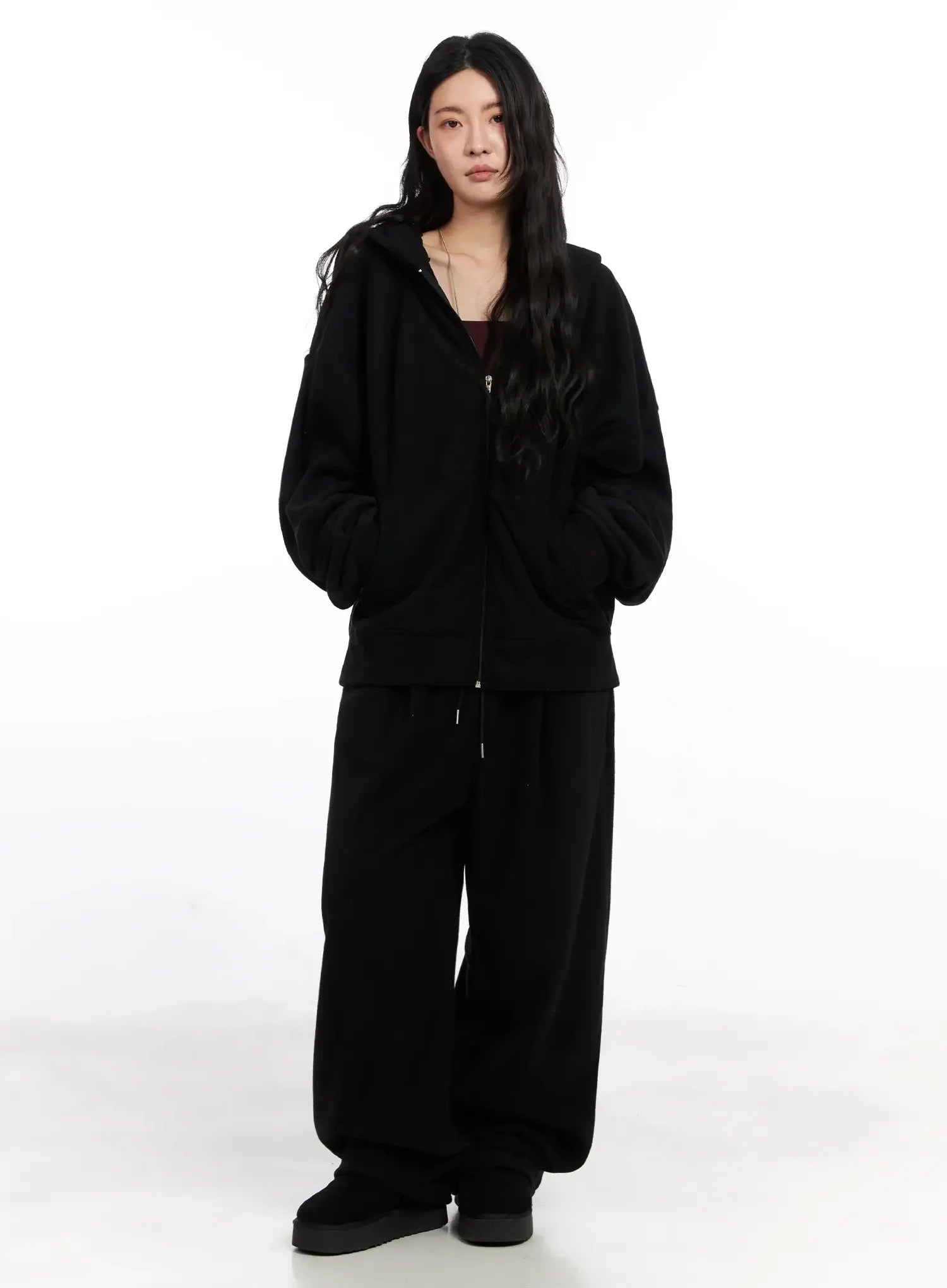 Model is wearing size M/L and the color Black.
