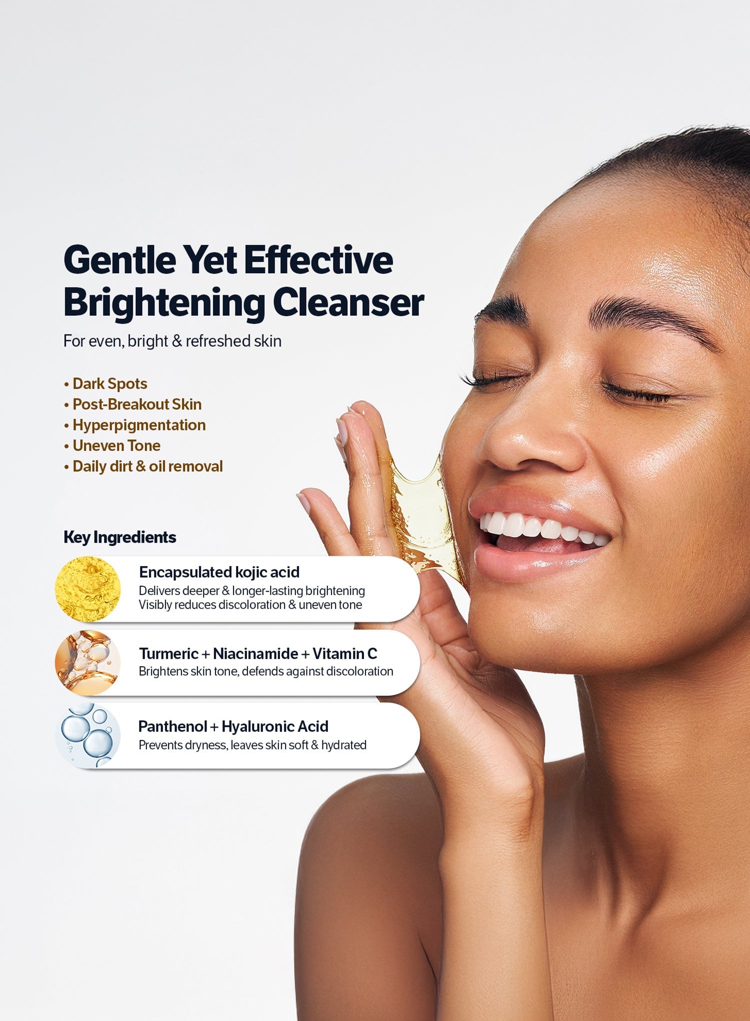 A brightening gel face cleanser that gently cleanses while reducing dullness and uneven tone with kojic acid and antioxidants