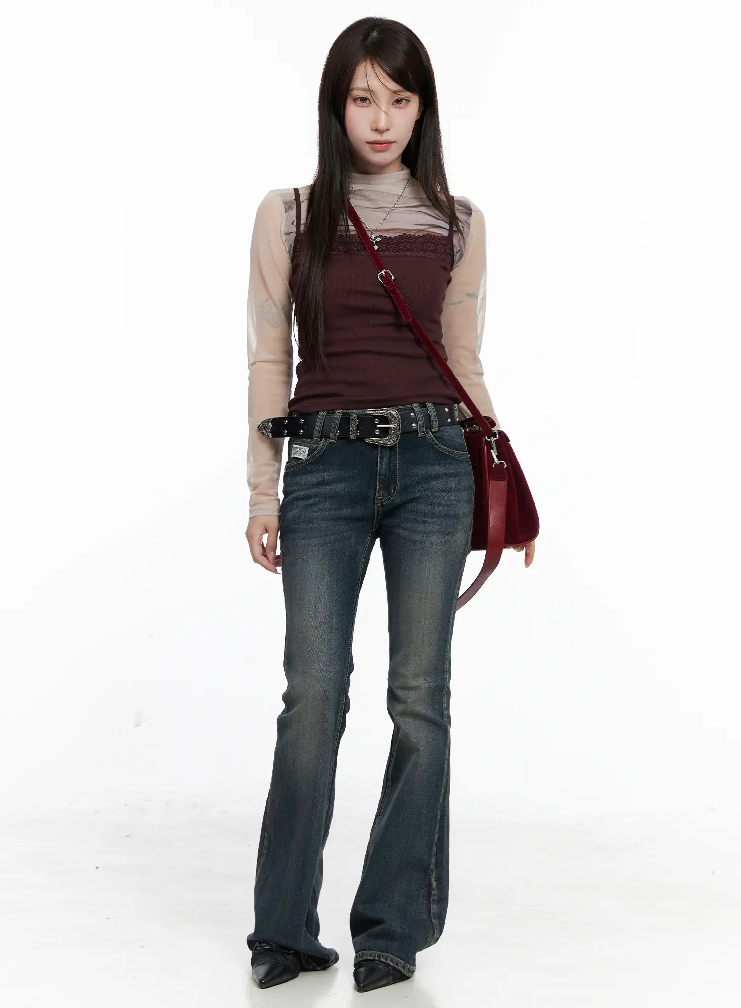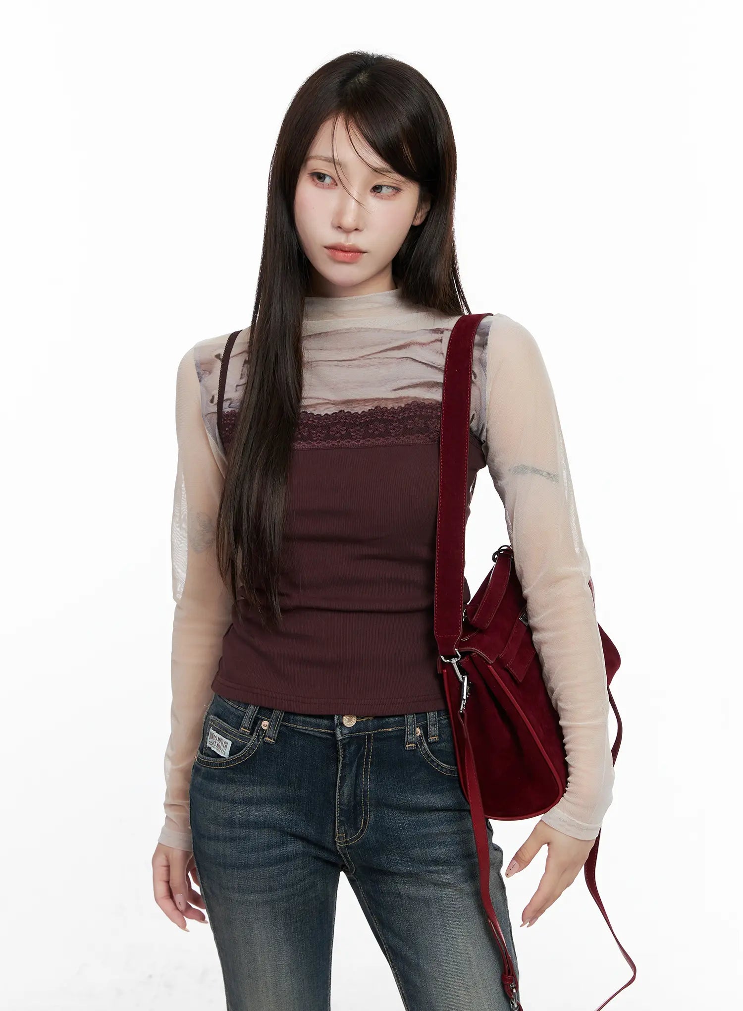 Model is wearing size S/M and the color Dark red.