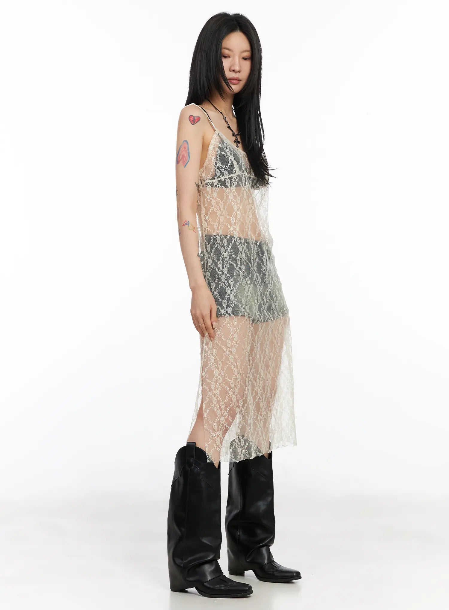 Lace Sheer Overlay Dress CM517