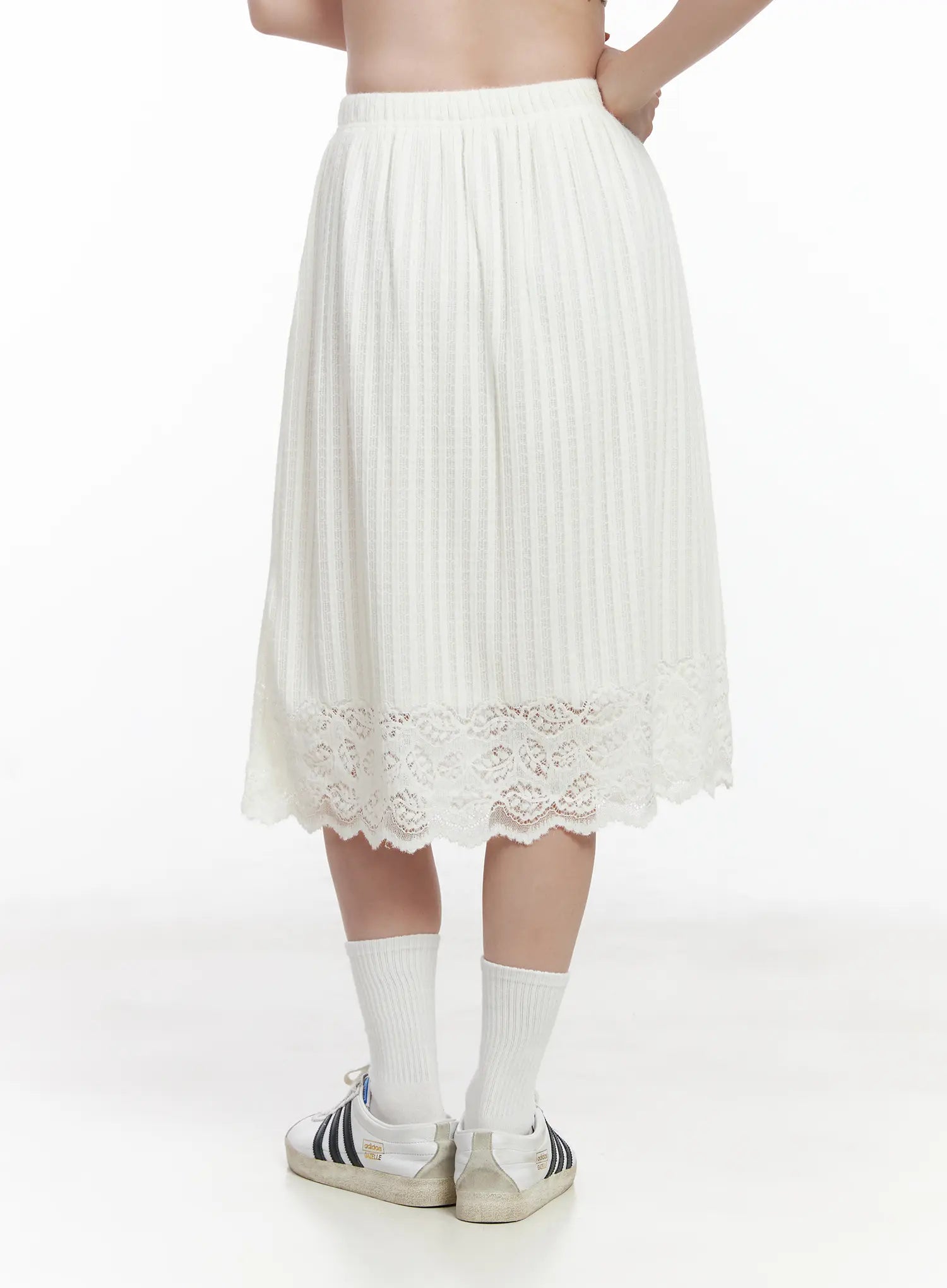 Lace-Trimmed Fleece Midi Skirt CJ520