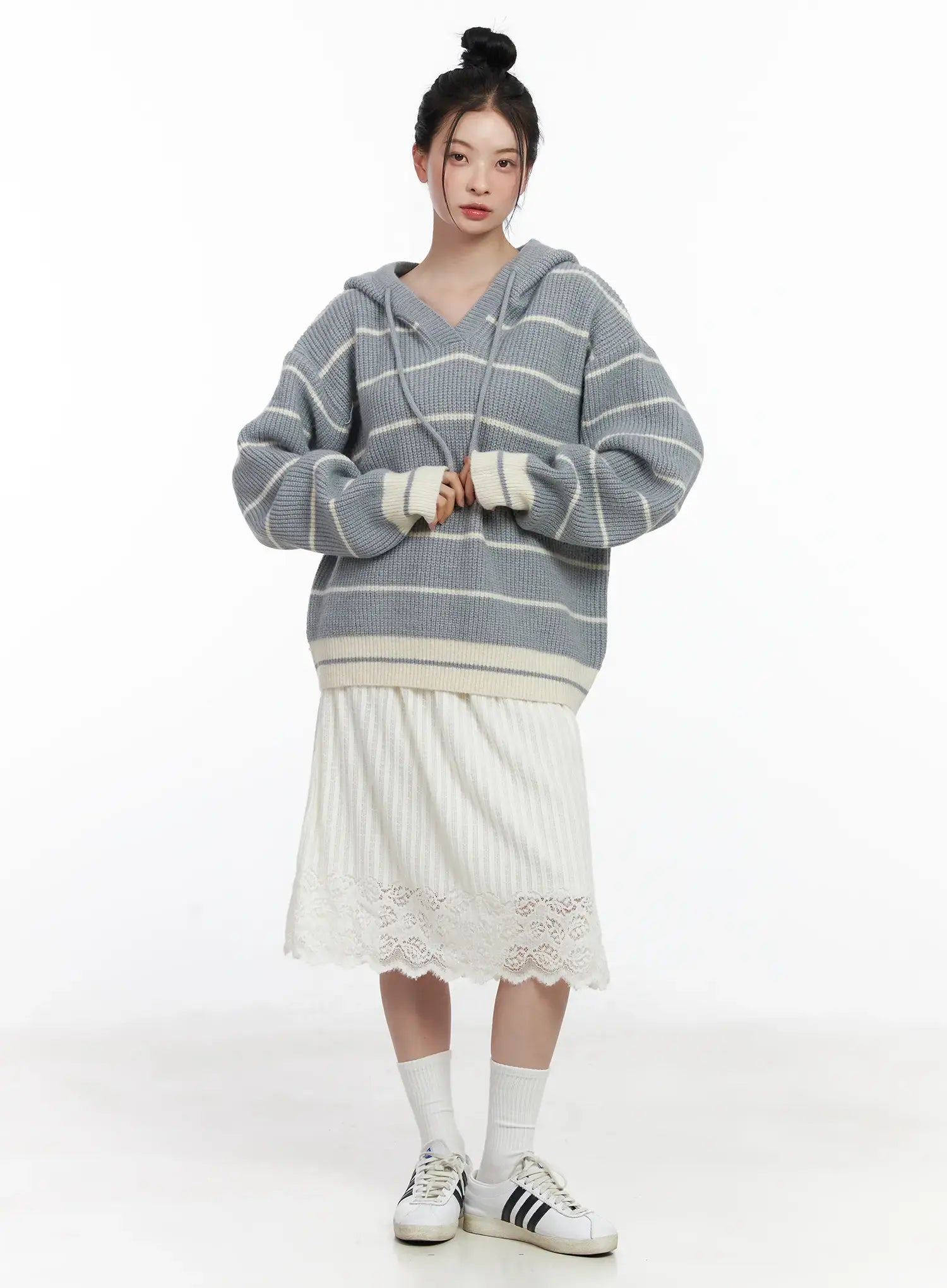 Model is wearing size S/M and the color Light beige.