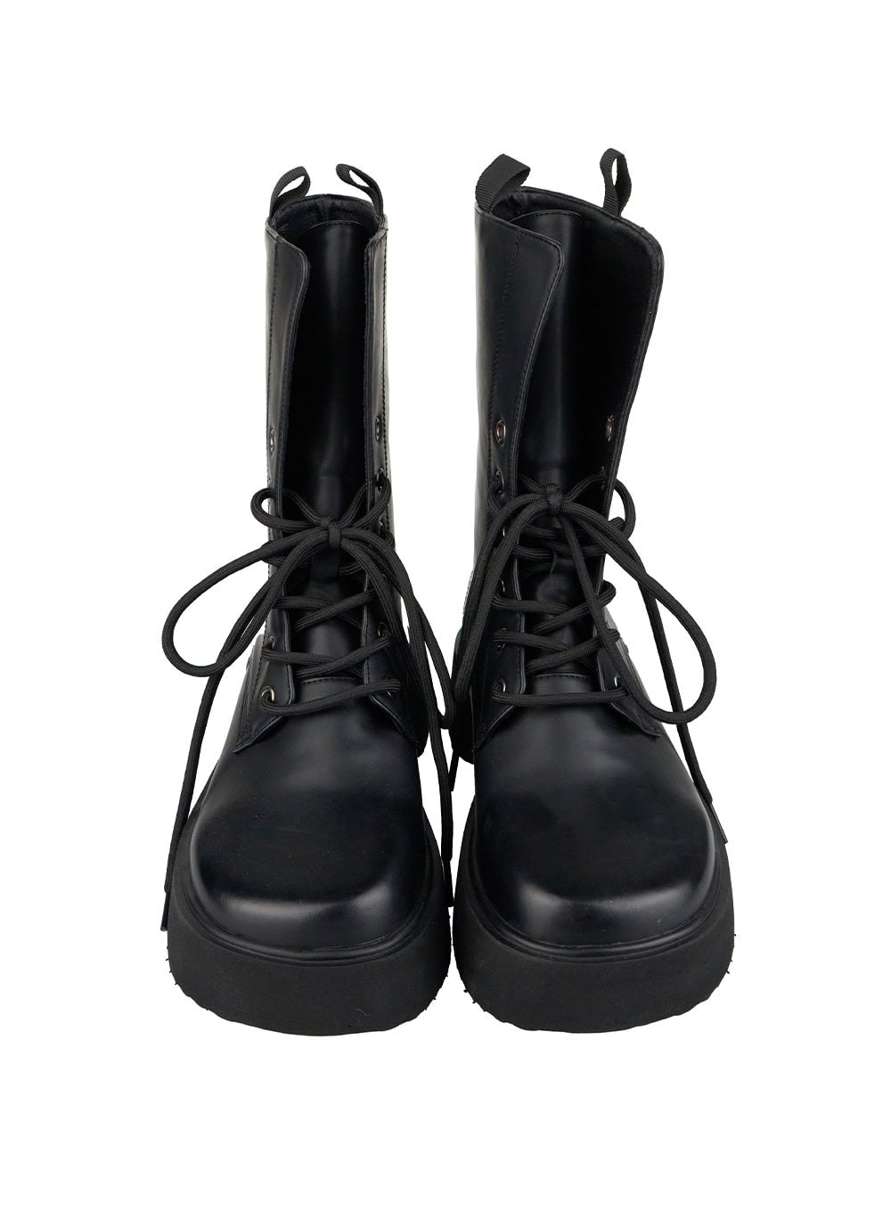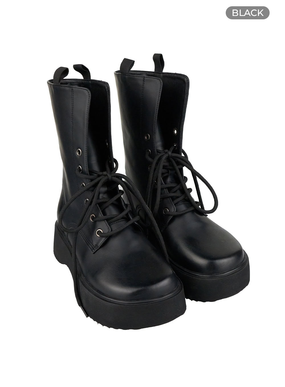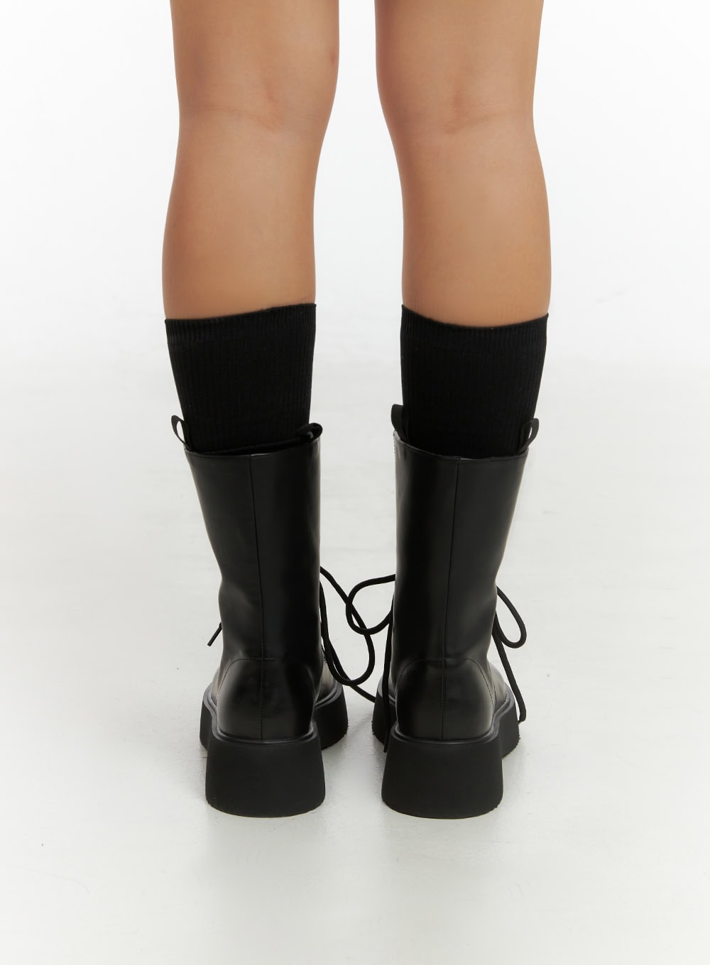 Lace-Up Faux Leather Midi Boots IS402