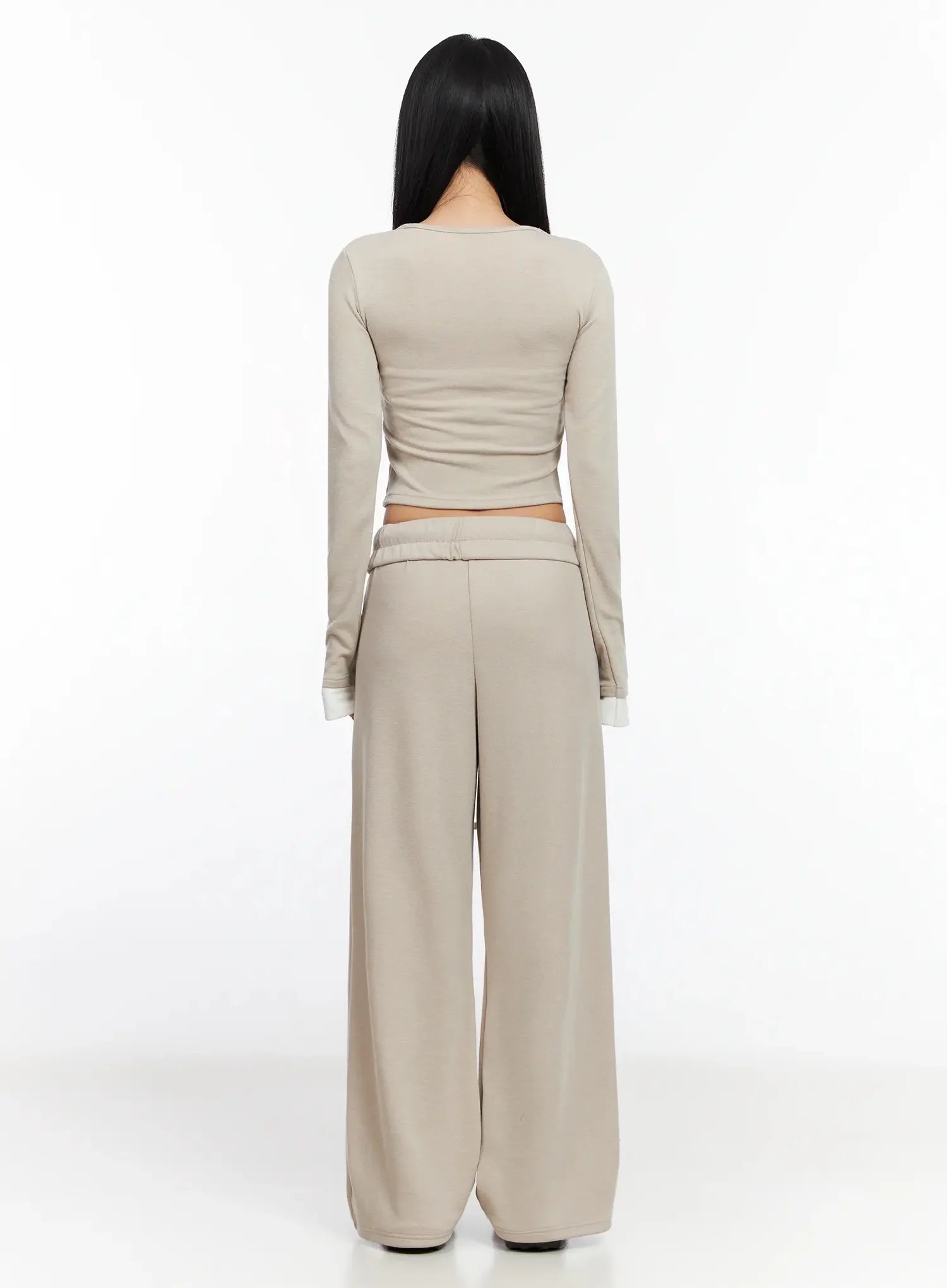 Model is wearing size S/M and the color Beige.