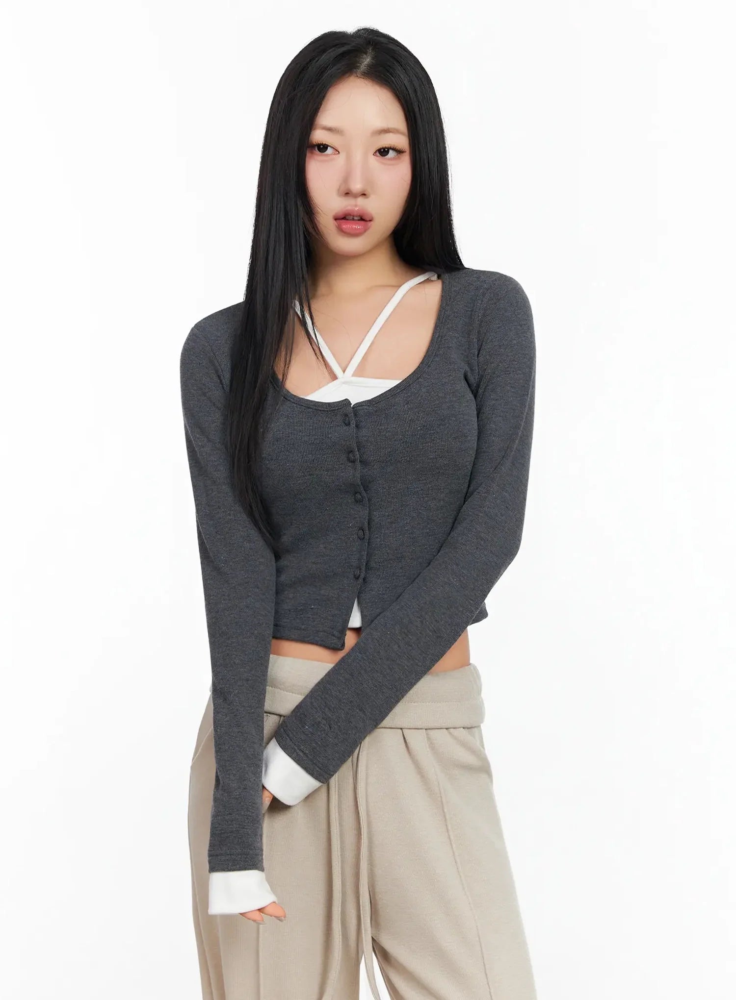 Layered Halter Cardigan Top IA507