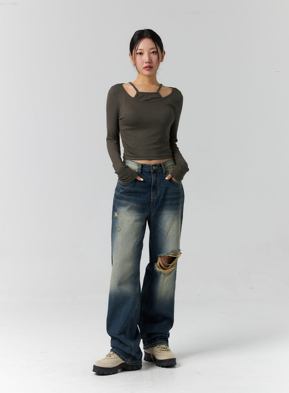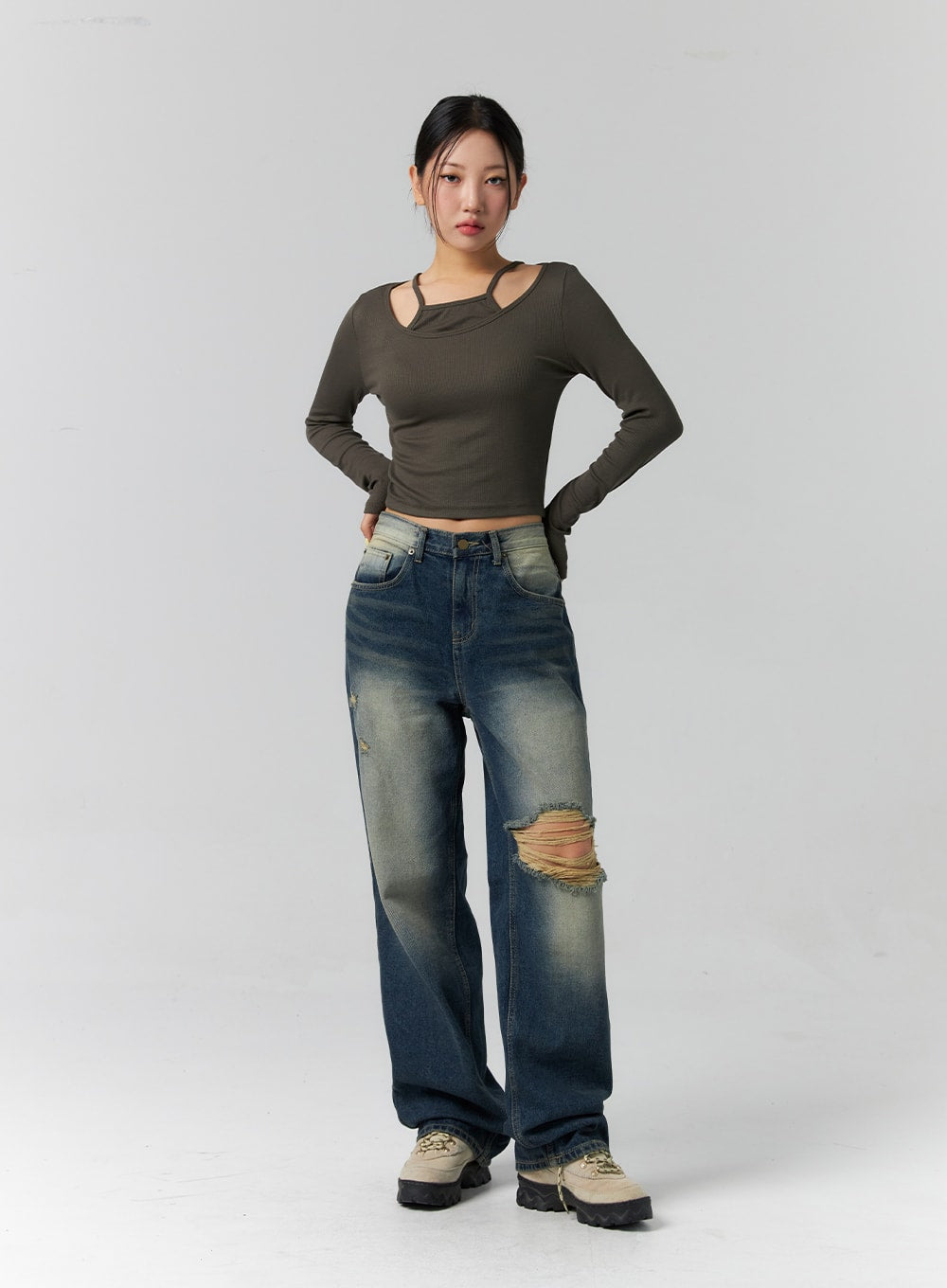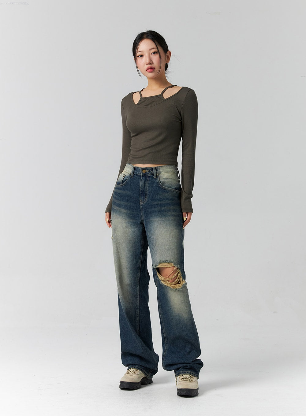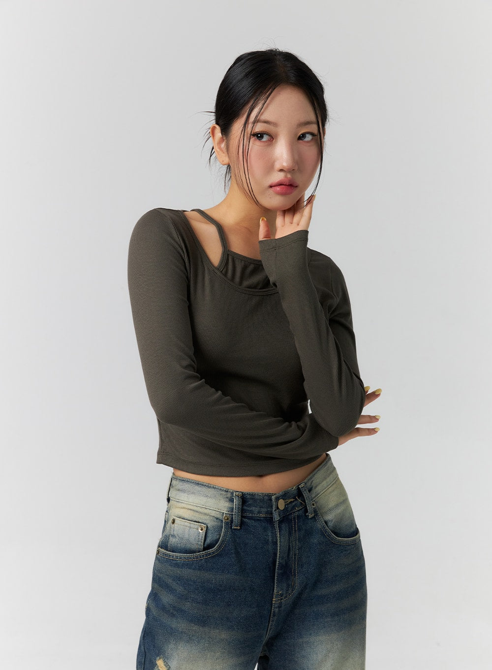 Layered Ribbed Long Sleeve Top CS308