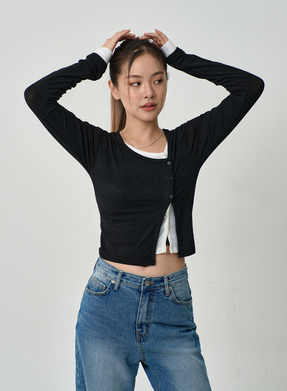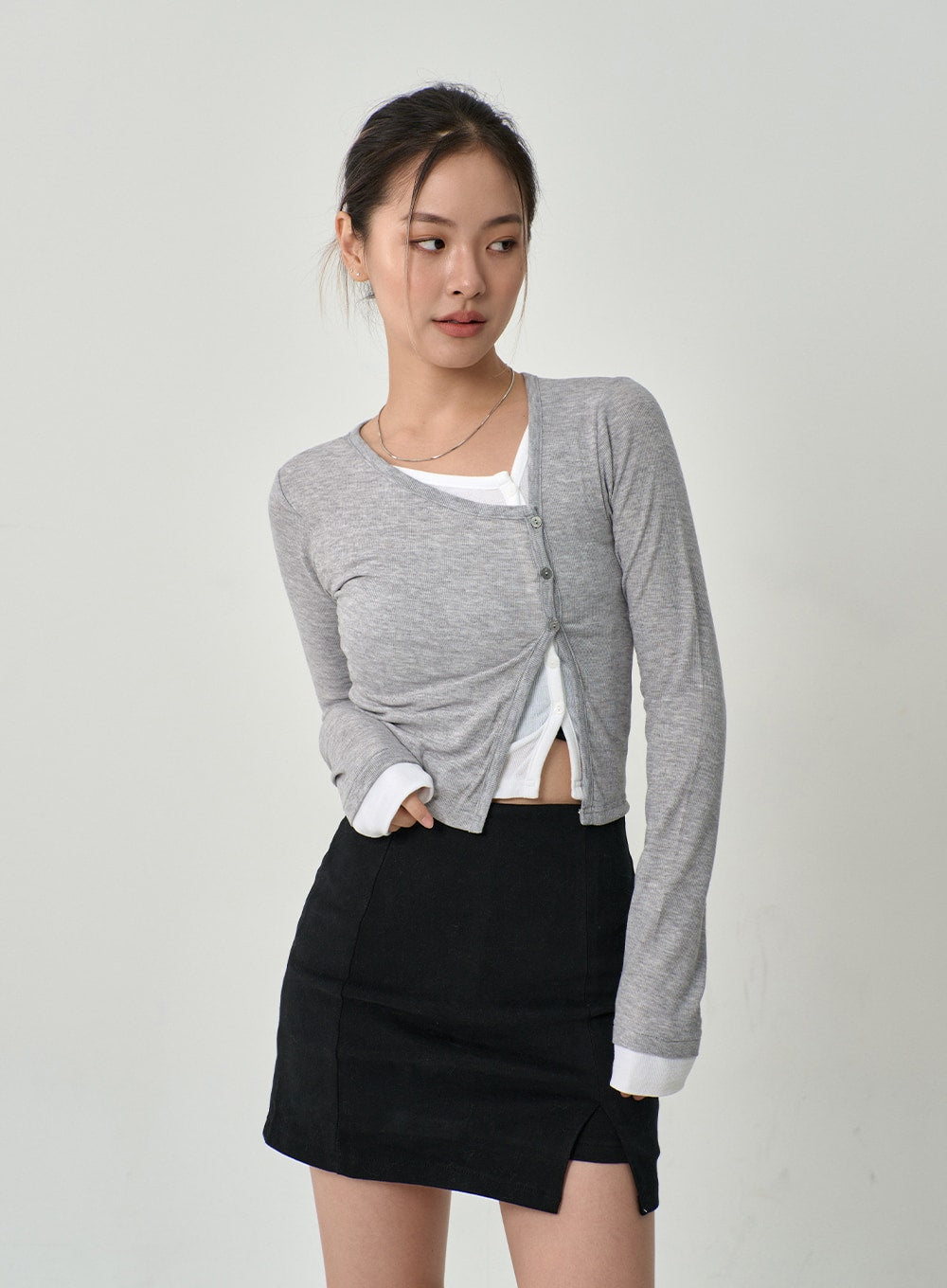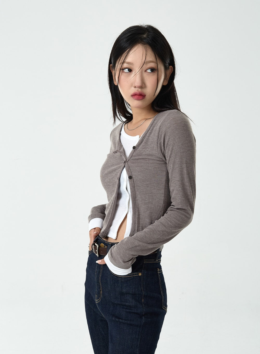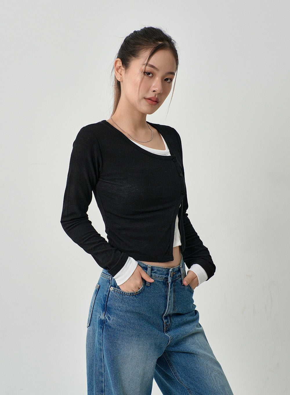 Layered Side Button Cardigan CG10