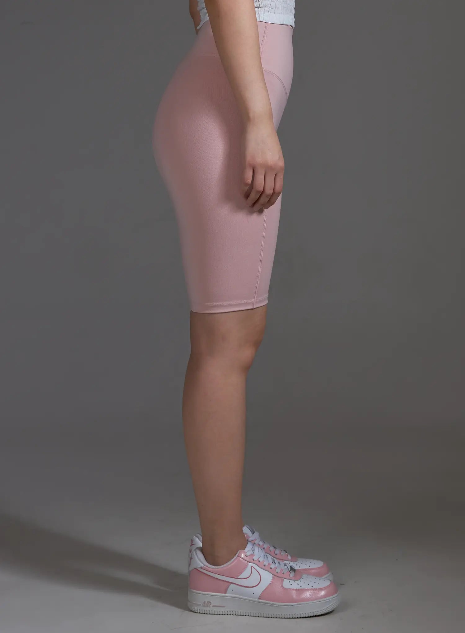 Light Pink High-Waist Biker Shorts (Light Pink) IO517