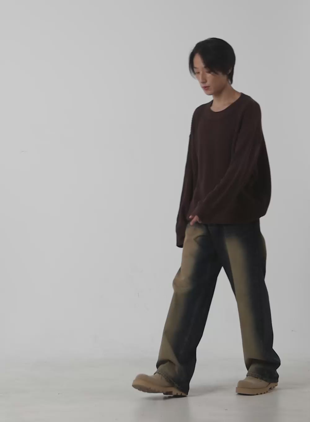 Model is wearing size L and the color Brown.