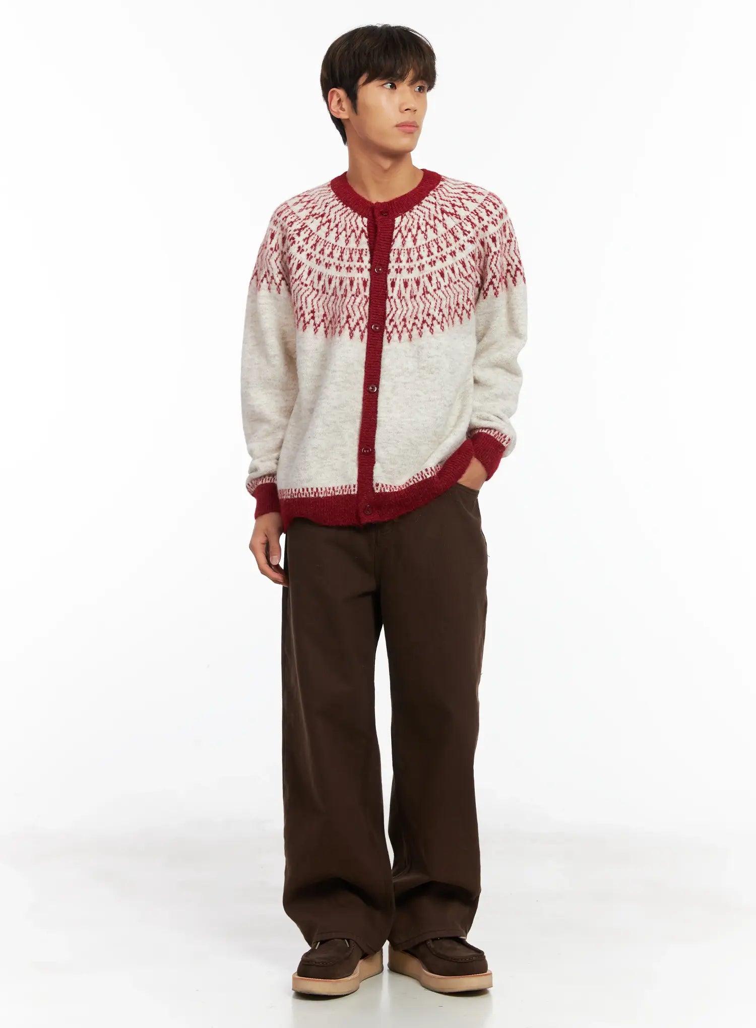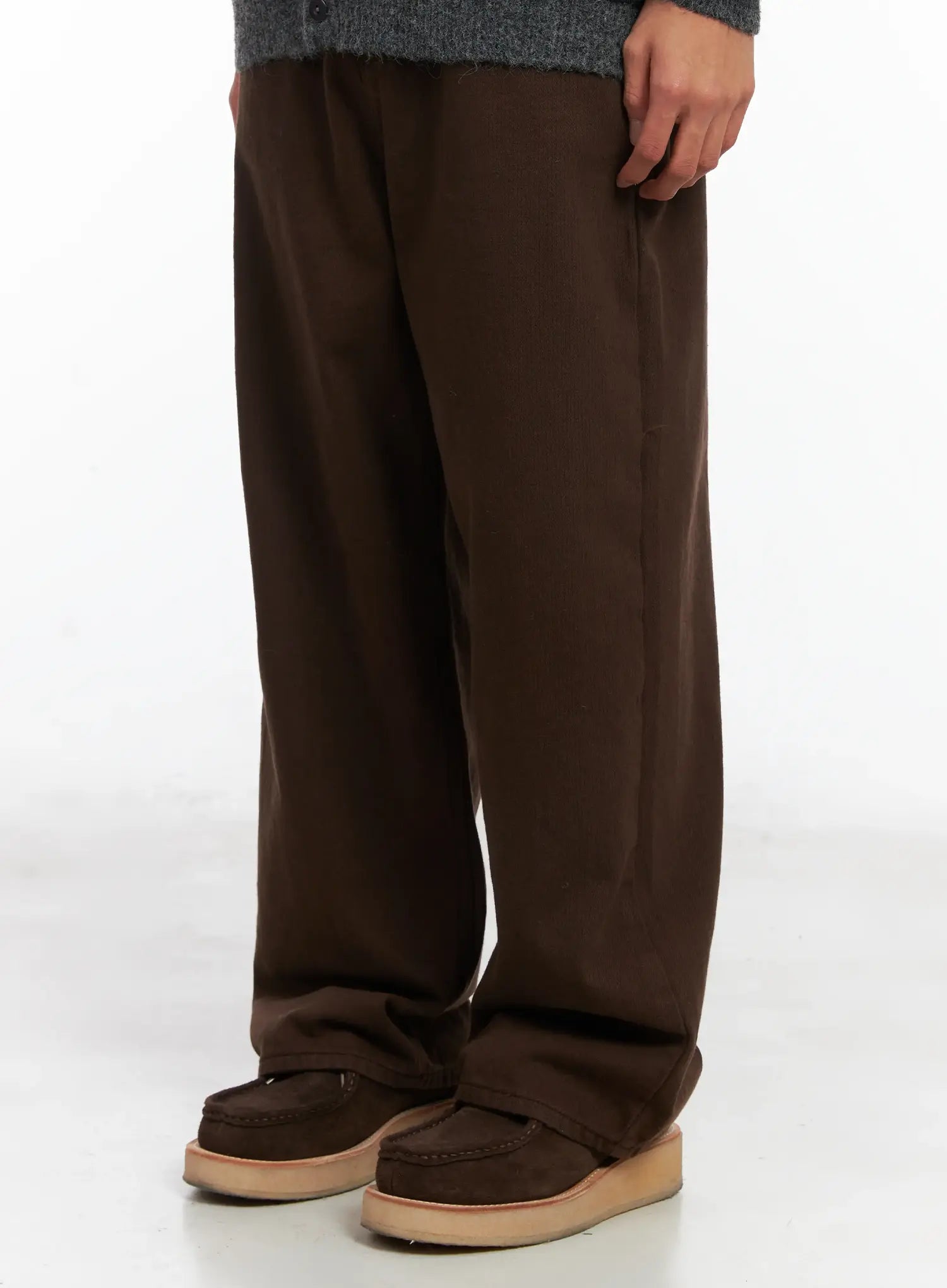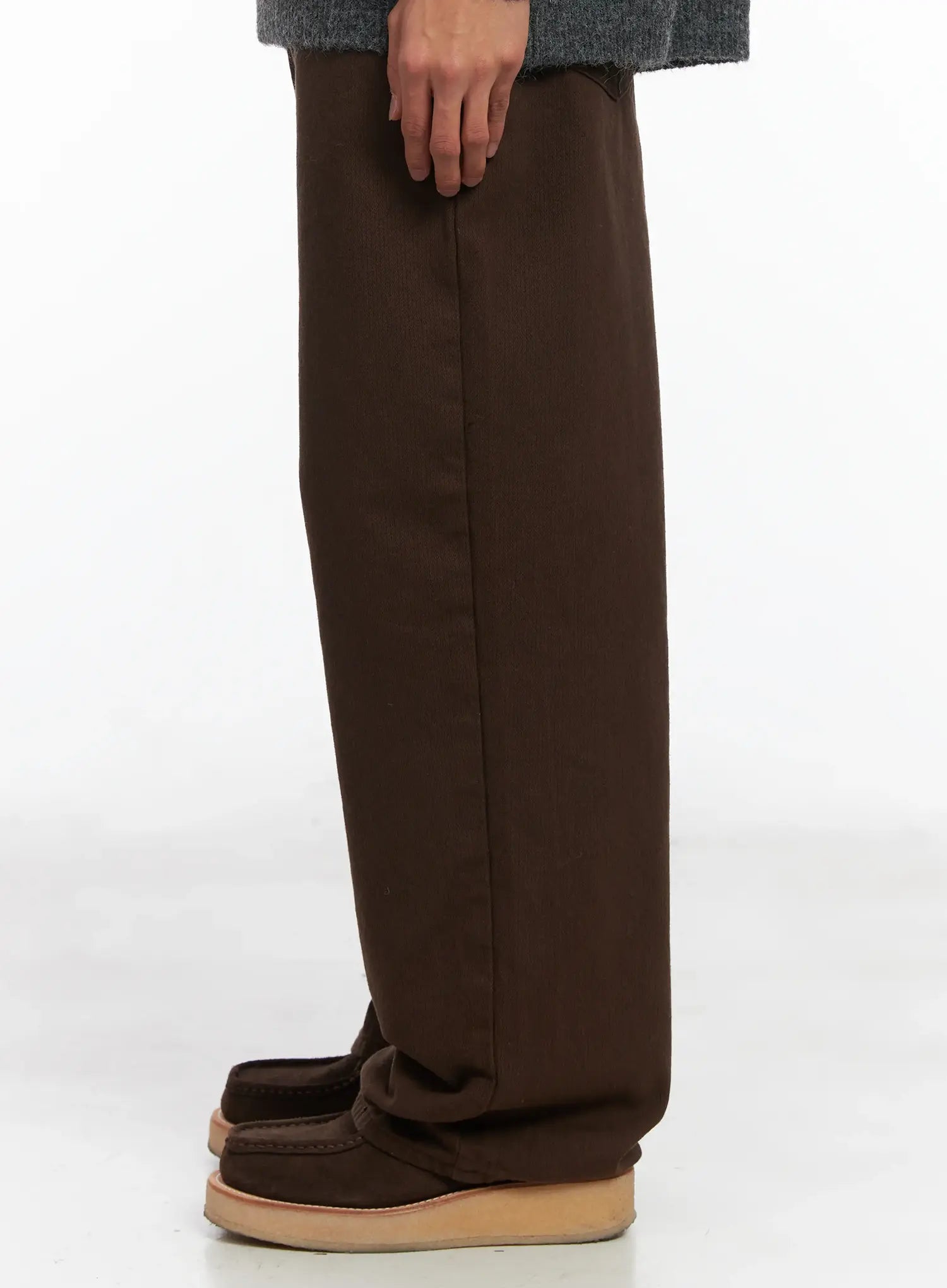 Men's Brown Herringbone Wide Cotton Pants ID511