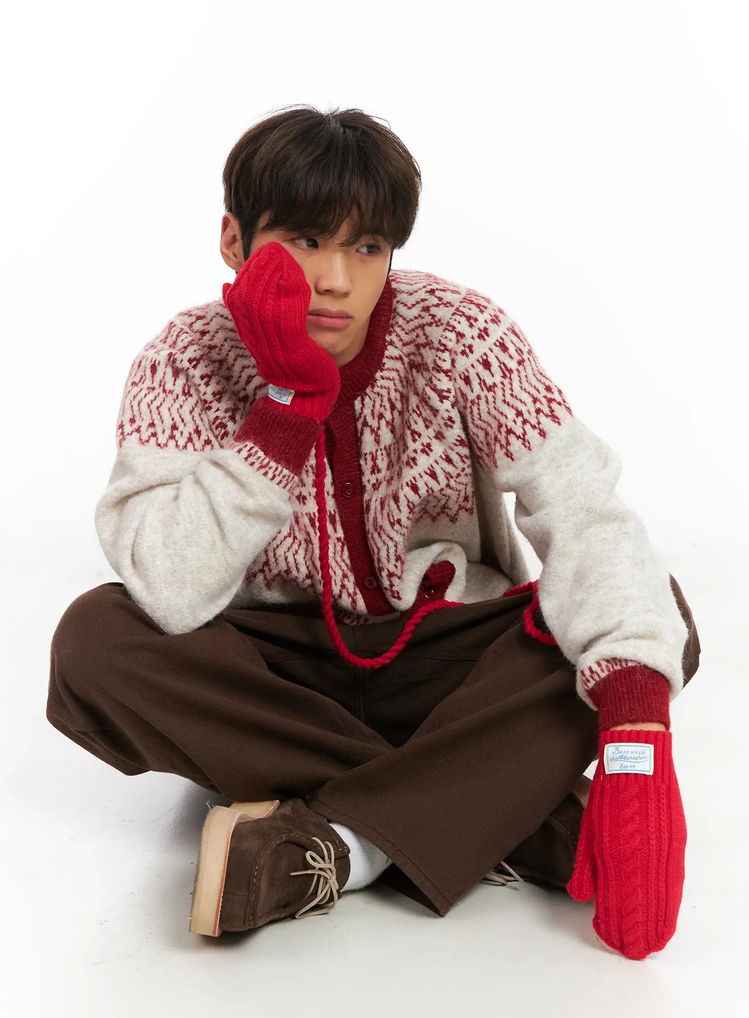 Model is wearing size L and the color Brown.