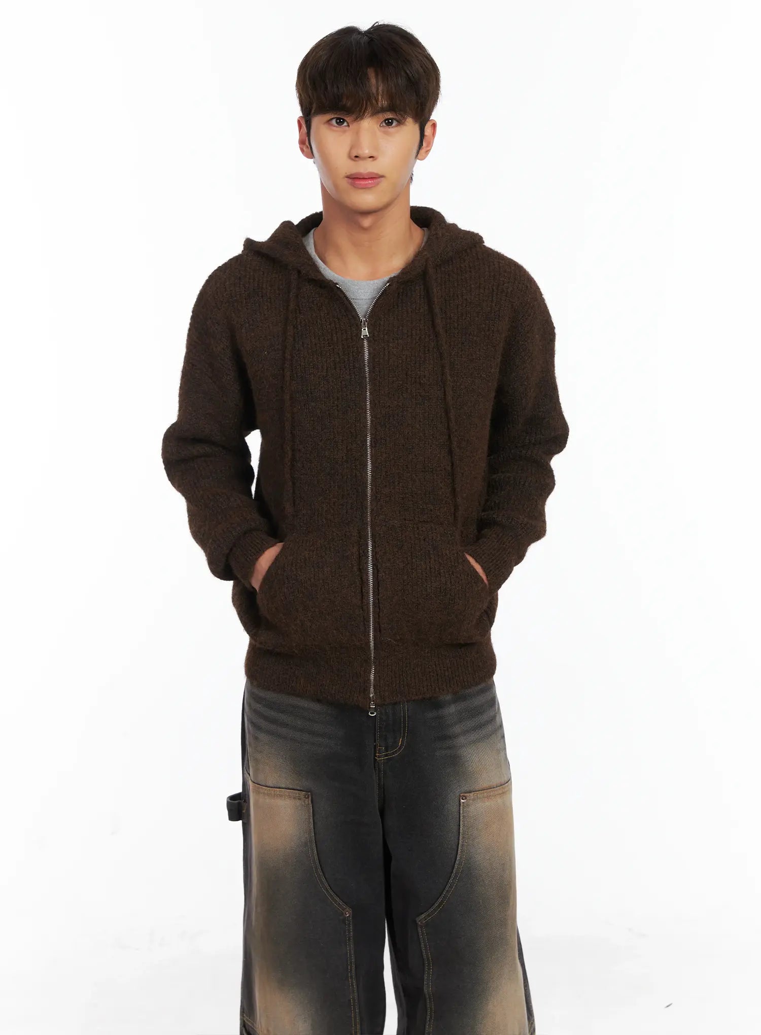 Men's Brushed Wool Knit Zip-Up Hoodie ID511